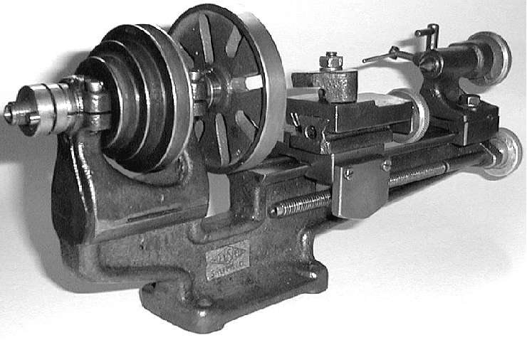 An early example of the later, more highly developed, Mk. 2 Flexispeed. This basic model has a compound slide rest, full-length leadscrew, set-over tailstock, separate headstock casting and longer bed foot - but no backgear or the leadscrew worm-and-wheel drive from the headstock
