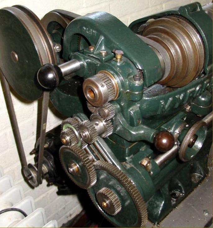 While the first version of the Myford 4-inch precision is very rare, it was also constructed as a capstan version. In both models, instead of the well-separated feet under headstock and tailstock of the later machines, the bed had a form that might be described as "semi-cantilever" with an enormously long foot under the headstock end and a perfunctory support under the tailstock. There were several minor differences as well: the cross-feed screw ran directly in the metal of the saddle (later machines had replaceable nuts); the tailstock used a different casting, the changewheel guard was in aluminium not cast iron and the tailstock-end bearing for the leadscrew was part of the bed casting instead of being bolted on.