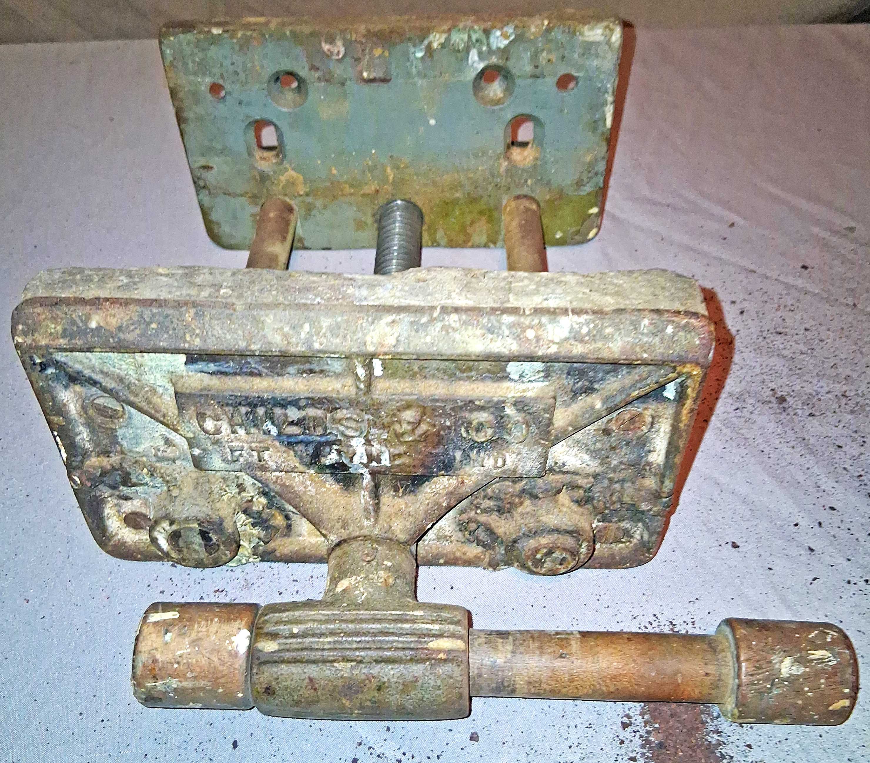 Little is known of the Childs Company, other than that they appear to have been, at one time, based in Fort Wayne, Indiana, and made a variety of small horizontal and vertical millers, the small plain-turning lathe featured here, table saws, a vertical bandsaw, vises and at least one simple but heavy little wood-turning lathe, the Model 200 (shown at the bottom on the page) where the spindle ran in plain bronze bearings. All were aimed, obviously, at the amateur and possibly the professional workshop dealing with small or lighter components. Other listed address for the Company includes Conneaut, OH, where they were known to have been based from October 1948 until July 1949; Conyers, GA listed as being their base from 1971 until February 1973 and Winter Haven, FL. Extremely rare (few can have been sold) and with a 2-inch centre height and admitting around 8 inches between centres, the plain-turning miniature lathe by Childs mirrored both the excellent build quality and tiny proportions of Company's better-known milling machines. Sturdily built from iron castings (complete with motor it weighed around 40 lbs), and mounted on a shallow cast tray, the lathe bed had a wide and flat top surface with 60° edges, these being used to locate the rigid, box-form headstock, the carriage and tailstock - with each employing a loose gib strip for adjustment. Running in ball races, the headstock spindle was bored through 1/4", used a No. 0 Morse taper socket and carried a 3-step pulley machined to take a narrow V-belt. Appearing to have been fitted as standard was a small 3-jaw chuck of the ring-scroll type by "Dexter". Drive came from a 1500 r.p.m., 1/15 h.p. rear-mounted motor mounted on a hinged baseplate, the weight of the motor being used to tension the primary drive belt - a system, when used, that invariably leads to "motor bounce", belt flap or some vibration as the mass of the motor is usually insufficient to tension the belt sufficiently. From the 2-step pulley on the motor, the drive passed to a small but robust countershaft arranged on a hinge and fitted with a tensioning screw to provide a positive drive. Although the arrangement gave 6 speeds, as the difference in diameter of the 3-step pulleys varied only slightly (1.5", 1.6" and 1.8"), with each of the two ranges the spread of speeds would have been rather restricted. For a miniature lathe, the carriage was of heavy construction with the bolt-on apron carrying a full nut through which the overhung leadscrew passed; a small, un-graduated handwheel, with a wide, knurled surface being fitted at the tailstock end. As there was no quick-action rack drive, repositioning the carriage meant much twiddling of the handwheel. Of plain construction and without T-slots, the cross slide was of the full-length type, with a rather short travel of just 1.5 inches, and fitted with an unusually wide top slide that could be swivelled through 360° - its mounting being an inverted cone with locking screws entering from each side face of the cross slide (just like a South Bend 9-inch). Each feed screw was fitted with a micrometer dial of the non-zeroing type, though the engraving was clear and knurled faces provided to aid the grip of oily fingers. Although heavily built as a one-piece casting, the tailstock included a number of crude features including a No. 0 Morse taper spindle whose thread ran in the main casting and a screw-down locking lever that bore directly against it. Similar post-WW2 miniature plain turning lathes include the Centix Micro, Hector, Jason, Pixi and Sartglen, Perris, York and some late versions of the long-lived Flexispeed range and its derivatives. Should any reader have a different lathe by Childs, or any publicity literature from the Company, the writer would be most interested to hear from you.. With thanks to the owner, Dave Trott, who supplied the excellent photographs below and has posted an interesting video showing the lathe in use. If you have a machine tool of any kind by Childs - or sales literature issued by the Company - the writer would be pleased to hear from you.