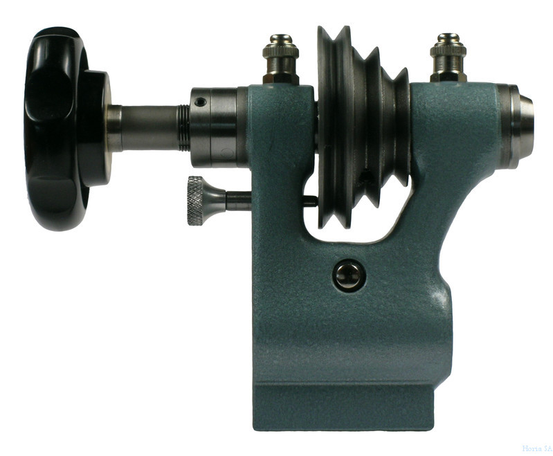 The Steiner No. 8 tailstock fitted with a barrel holding a slide runner (a cross slide which could, by rotating the barrel, be made eccentric in all directions) a useful facility for pivoting and hand-turning work. Two pulley were included of 12 and 22 mm diameter.