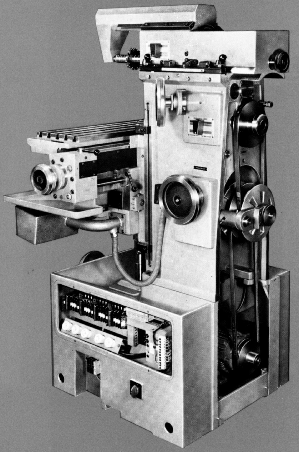 Vital in exploiting the full versatility of the F4 was the 146 lbs (66 kg) Universal Table: with five DIN 650 12 mm wide T-slots running down its 23.5-inch (600 mm) length the 10-inch (250 mm) wide table could be pivoted left or right through 15° from central and tilted backwards or forwards through 30° from horizontal