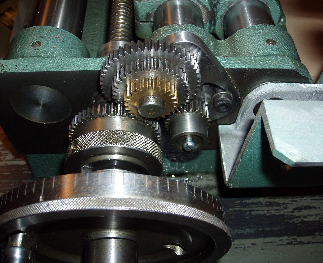 The end of the leadscrew was fitted with a usefully- large handwheel and micrometer dial. Note the use of bronze for the smallest gear