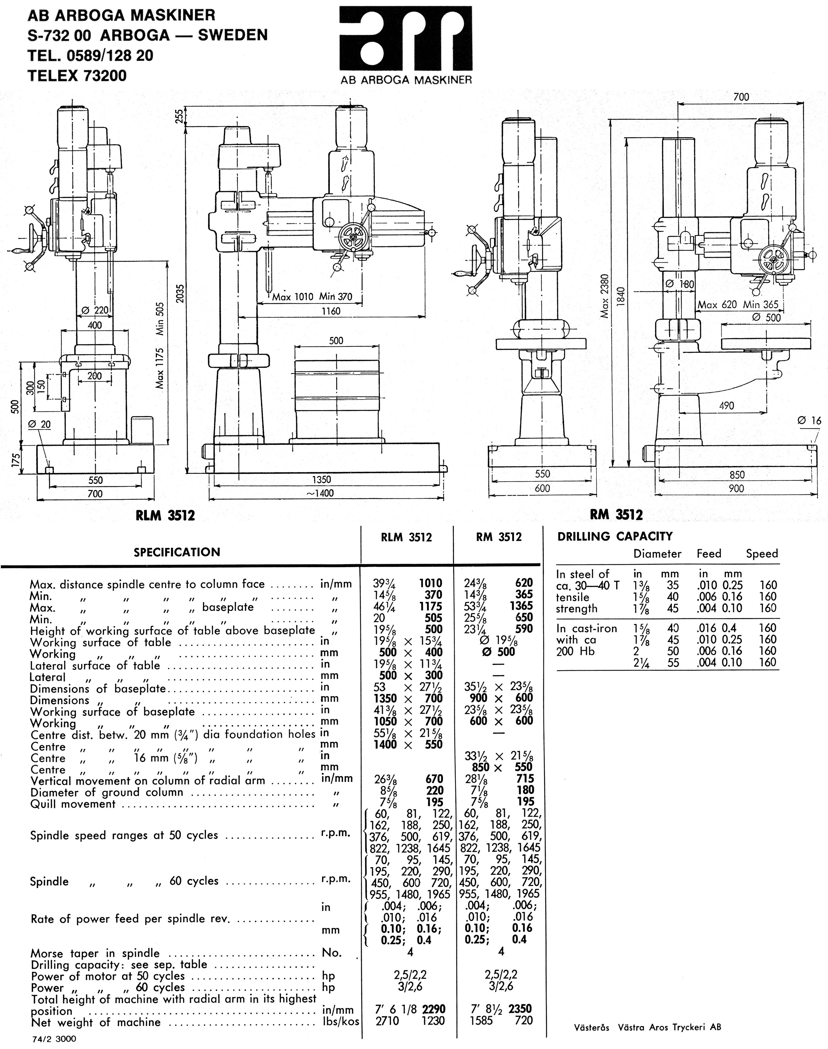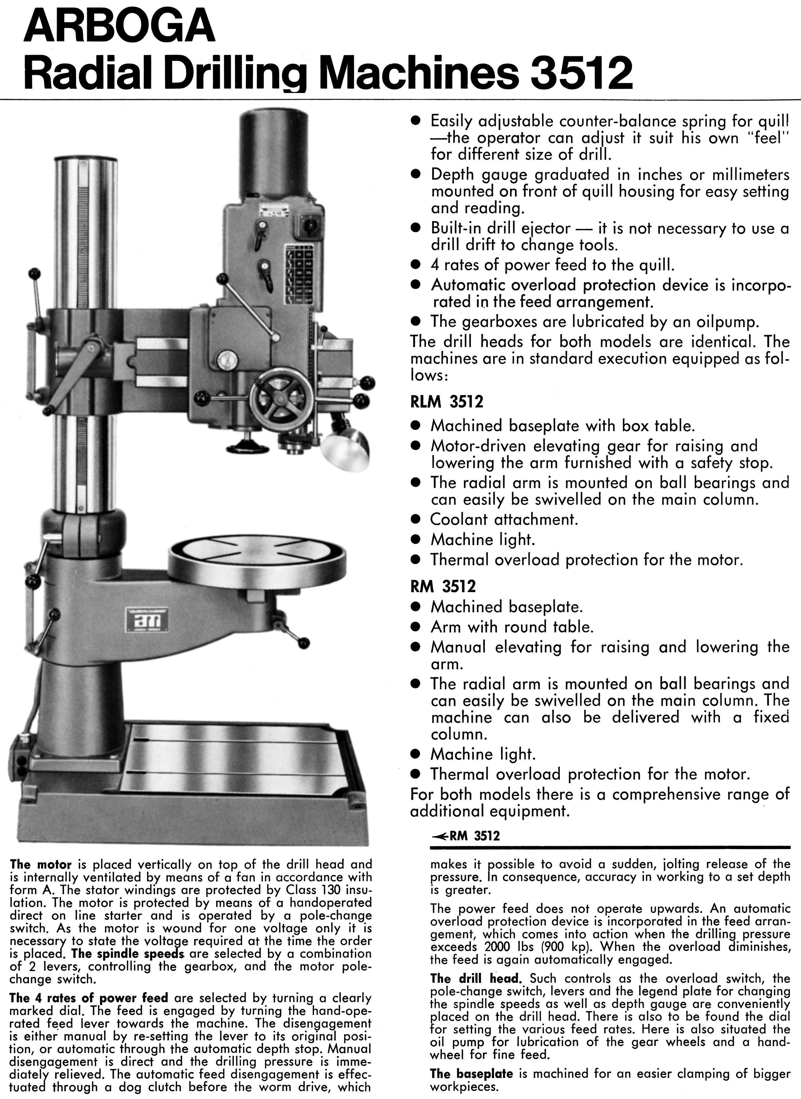 lathes.co.uk Arboga Drilling Machines - Catalogue Collection Arboga Drills Models 3512 Types GM, G2M, G3M, G4M, RLM & RM