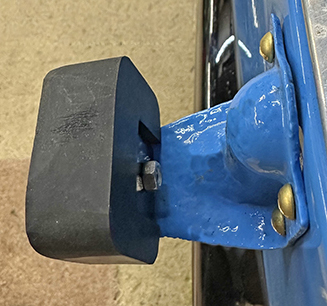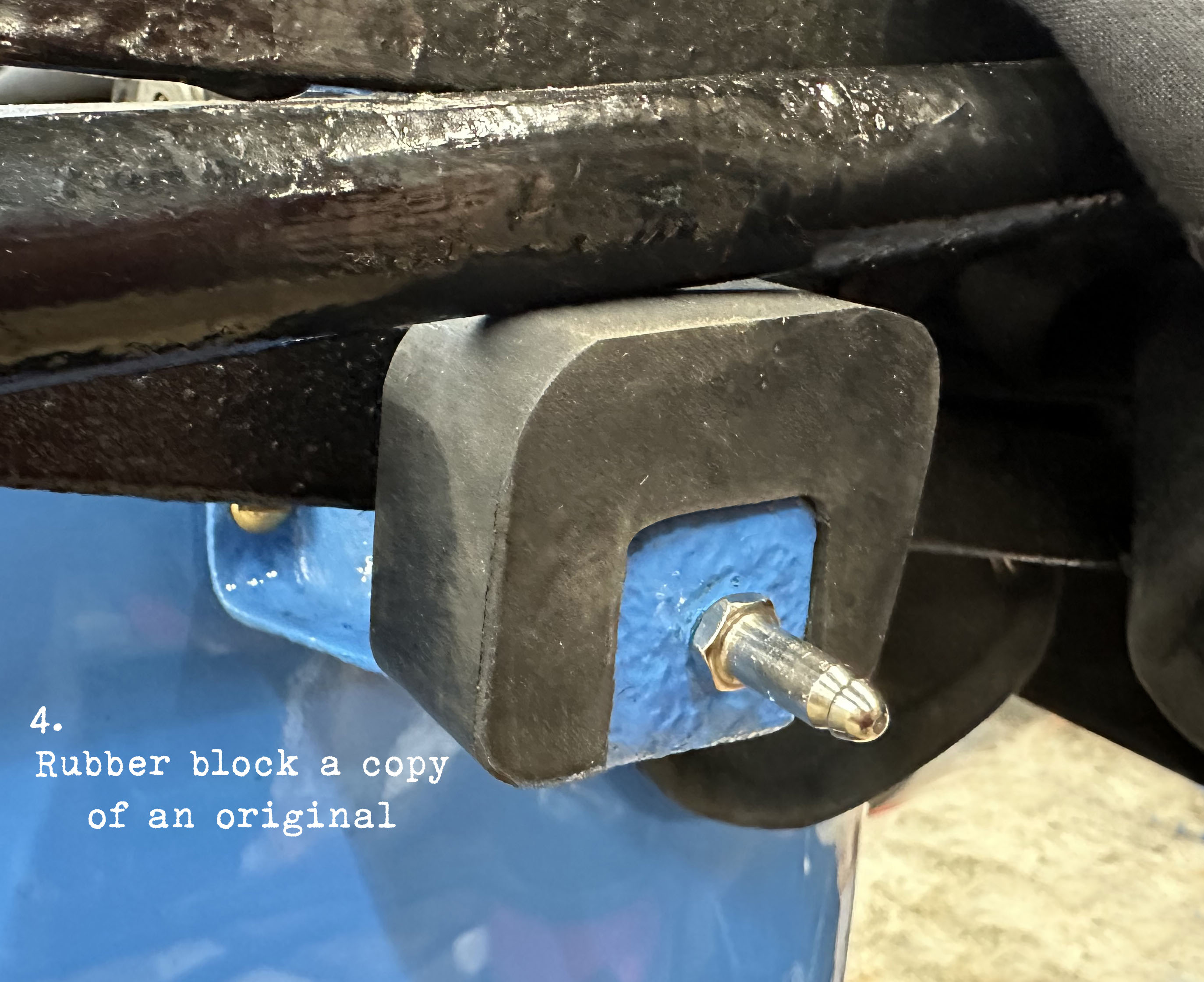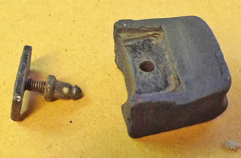 An original rubber block. Note the recess cut into the back face to accommodate the backing plate into which the Lift-a-dot stud screws. A similar cut-out is necessary that allows the block to register against the vertical front face of the support bracket.