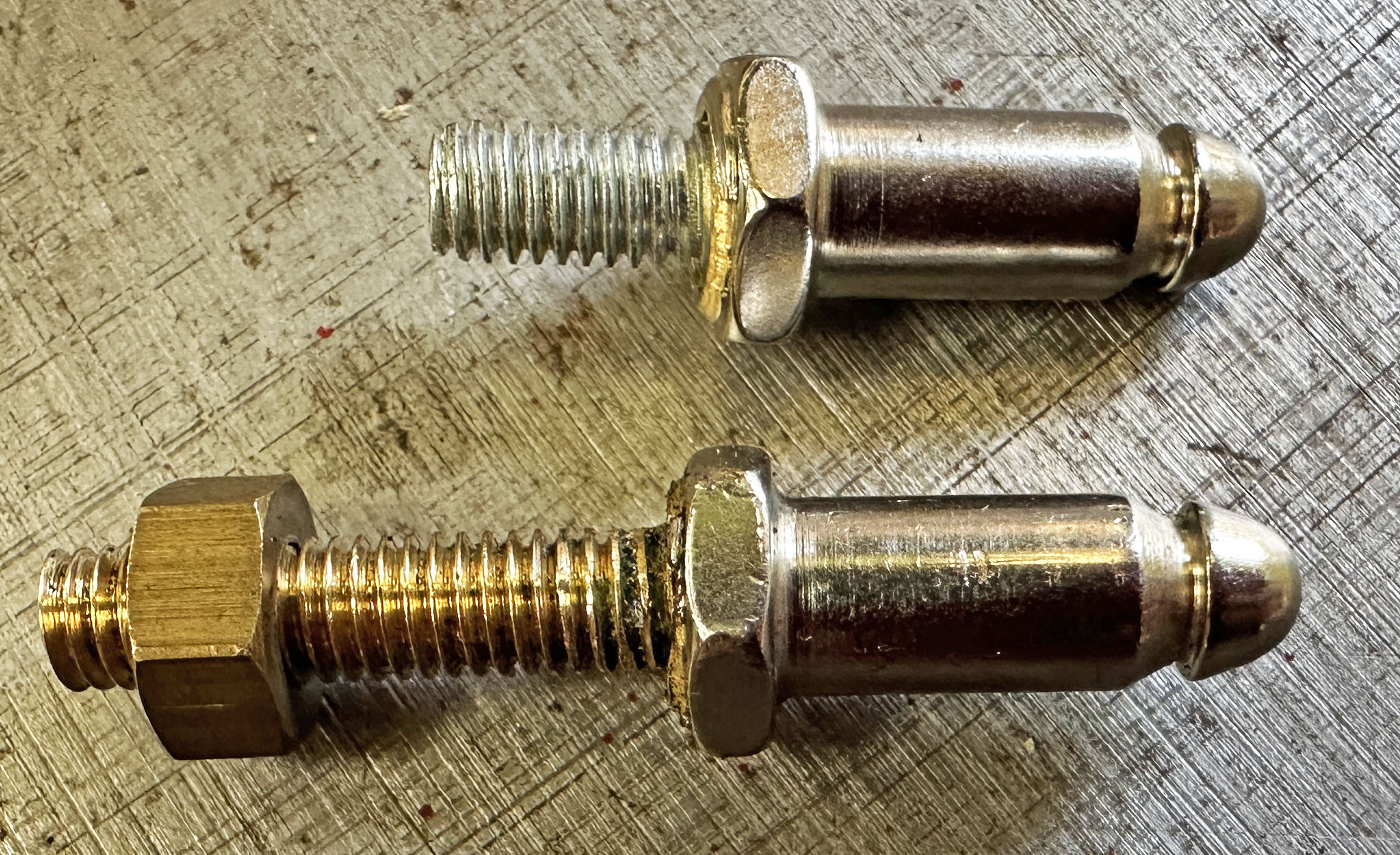 Double-length Lift-a-dot studs - the lower one modified to have a longer thread to pass through the rubber block