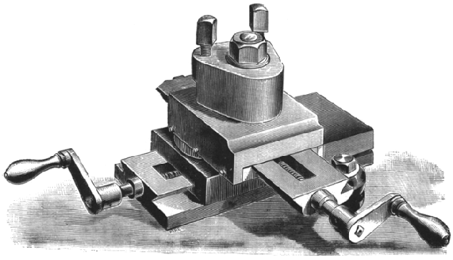 An unusual slide rest designed by W.S. Brown and manufactured Britannia. The entire tool slide was mounted on a pivot - and the cutting-tool retaining T-bolt, appears to have been connected to a lever mechanism by which means it could be slid along its slot.
