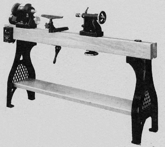 Developed originally by Earnie Conover Senior and Junior as an adjunct to their wood-working hobby, the Conover wood-turning lathe was produced in a well-equipped, modern factory operated by Alpha Fabrication Inc. and marketed by the Conover Company, P.O. Box 418, Mentor, Ohio 44061 USA (phone 440 350 4545 conover-lathe.com) - though unfortunately it is now out of production. Being constructed on two wooden bed rails the design today might be considered highly unusual - however, this method of construction was once very common, and used not only for wood lathes but also simple, large metal-turning lathes. Many examples have survived from the 1800s and are often found to be "home-constructed" by isolated machine shops with their beds "plated" and iron brackets added to induce a little extra rigidity. The last wood lathes of this type to be widely advertised were probably the $15.50 11-inch "Chipper" and $38.13-inch "Progress" lathes in the 1929 Sears, Roebuck Wood Working Machinery catalog. The advantages of the design are considerable and for the amateur, or even professional turner, offer the opportunity to construct a machine to their particular requirements: the bed as can as long as desired (though some sort of mid-way support would sensible at longer lengths), the 3-speed, V-belt drive headstock can be mounted in such a way as to produce a bowl-turning lathe of great capacity and even two headstocks mounted back to back one for bopwl and the other for between-centres work. Although the factory offered various types of AC and DC motors with either direct-drive or variable-speed control, impecunious and enterprising owners could always select a suitable ex-industrial 3-phase motor and run it from a home-made 1-phase to 3-phase converter - details of which can be found here. In the case of non-variable speed AC motors the makers offered a traditional style of rear-mounted V-belt drive countershaft intended to be hinged from a bracket (made by the owner from wood) at the back of the headstock. With a swing of 16 inches (8-inch centre height) Conover had all its main components cast from 30 Gray iron with the complete set of castings (to fit on the bed rails) weighing 130 lbs. The headstock spindle was a sturdily constructed item with a generously-sized 1.5" 8 t.p.i. Nose, a No. 3 Morse taper socket and bored through 25/32" hole; it ran on Timken taper roller bearings and carried a 4-step, Poly-V, cast-iron pulley that was ringed round its largest diameter with 24 indexing holes. A pleasing touch was the inclusion in the accessory list of a draw-in adaptor that could be ordered ready-threaded to accept Myford, delta-Rockwell, Powermatic or Sears accessories. While a thin plastic or sheet-steel cover for the headstock belt and pulley would have saved the makers a good deal of money, they chose instead to use a properly-made one in cast iron. The tool rest was fitted with a quick-release, over-centre handle and the cast-iron T piece grooved along its top surface to allow the operator's thumb to assist with straight-spindle turning. An optional kit was offered that allowed the standard metal T-rest to be replaced by a wooden one of unlimited length - the tailstock being adapted as an end support by the addition of a threaded right-angle pin that screwed into a boss formed on its front face. Mounting any sort of lathe is always a problem and Conover offered a pair of traditional-form, cast-iron legs weighing 73 lbs each. The legs were fitted with tapped holes in the feet for levelling screws and provision for fitting either two shelves or (as suggested by the maker) a box that could be filled with sand to further improve the mass and stability of the machine; the legs also looked as though they might have been useful to owners of antique metal-turning lathes whose machines had lost their original supports. If the legs were beyond the means of the owner, the Conover instruction book includeda set of plans for a pair of (sand-filled) plywood legs that the makers claimed would be just as effective - if aesthetically inferior. Of the "Myford" externally-threaded type, the tailstock spindle (barrel) had a 1-inch diameter, 5 t.p.i. Ame-form thread and a No. 2 Morse taper; the outside thread left a good clear bore through which long-hole boring (gun-drilling) attachments could be operated. The tailstock base incorporated a machined boss that slid between the bed rails and the clamping arrangement was by a sturdy handwheel, threaded rod and T-clamp that provided a direct pull to the middle of the unit. At a time when the number of well-constructed wood-turning lathes seemed to be on the increase, the Conover occupied a unique place as a successful interpretation of a very-old idea. Should a reader has pictures of their Conover set up in an unusual or interesting way, the author would be pleased to hear from you..