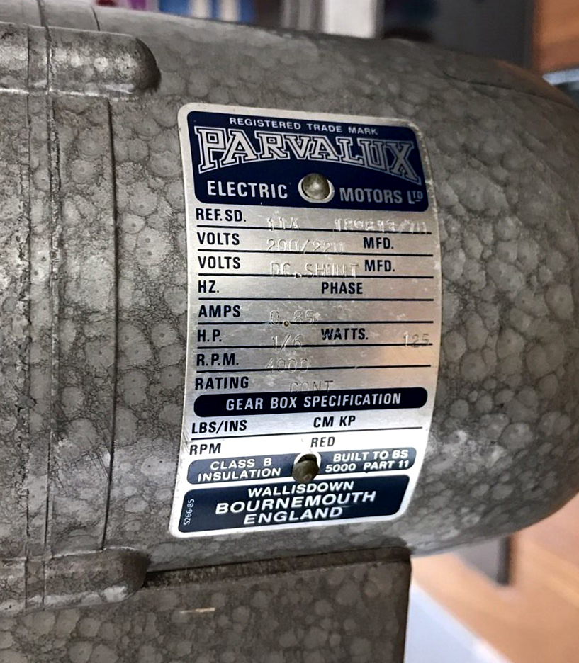 Mk.1 Cowells miller - the correct (early), high-quality high-Parvalux 1/6 h.p., 4000 r.p.m. continuously-rated variable-speed DC motor.