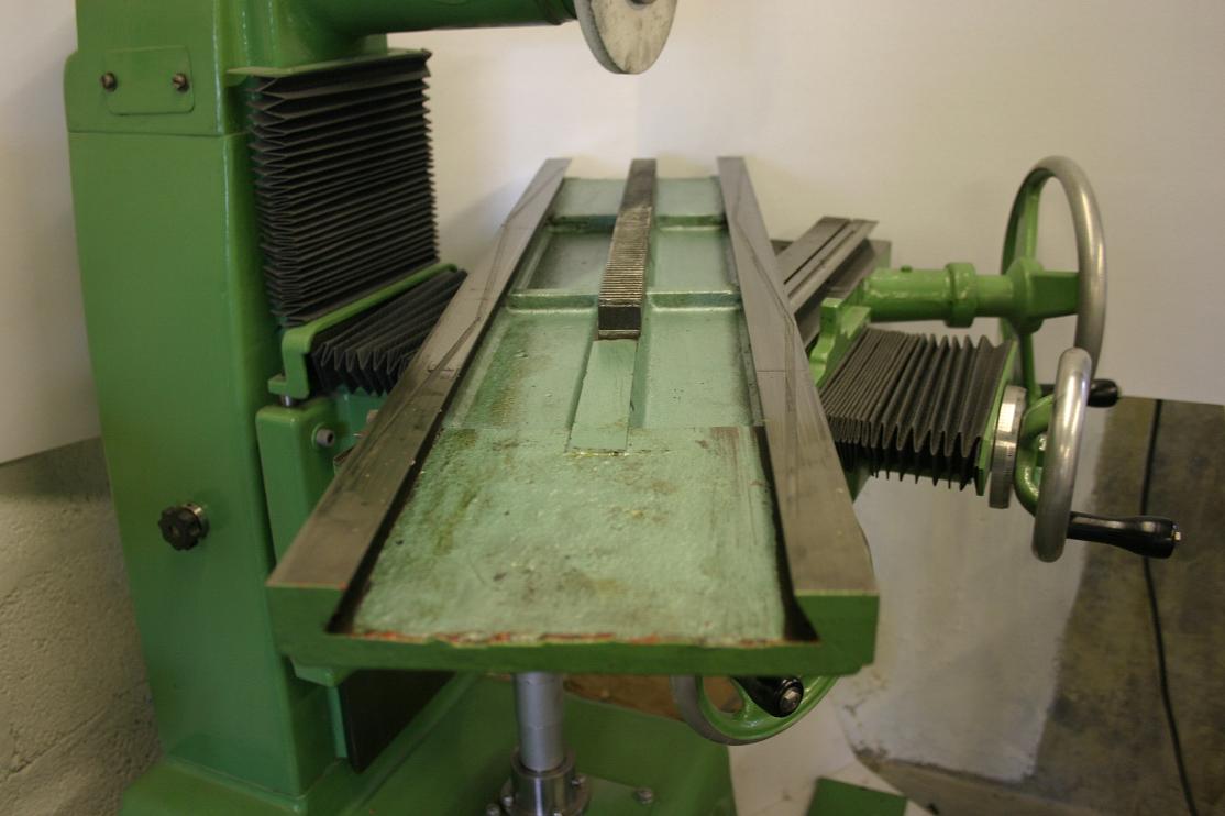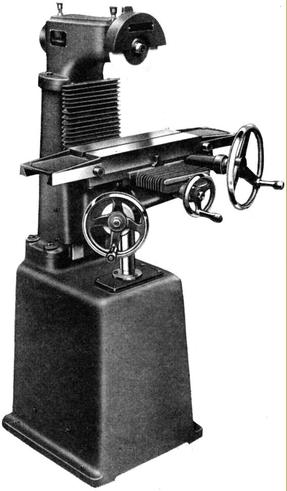 Manufactured from the late 1940s until the 1970s, the Eagle hand-operated surface grinder was built by Dronsfield Brothers Ltd. at their Atlas works in Oldham England. One of a number of UK-made hand-operated surface grinders, its main competitors were the very similar Capco, Superior and Herbert. Dronsfield also produced the Marlow miller, a low-cost machine once popular in schools and colleges. Design rights to the Eagle eventually passed to the Victa company, originally from Maidenhead, Berkshire, but later of Poole, Dorset. The Victa Company was involved in numerous projects involving small machine tools including the well known and beautifully-made Centec milling machine that began life in the early 1940s when the model was introduced as a development of the V.E.C. or Victa horizontal miller, a machine sometimes badged as a "Warwick". During the 1940s and early 1950s Victa also marketed lathes by other makers, including one by Grayson that they sold as the Warwick - as well as a quite different and rather advanced range of geared-head lathes marketed using the Hobson brand. Built originally in two ranges, Standard and Heavy-duty, the former consisted of three sizes 1, 2 and 2A (identifiable by bolt-on head castings) and the latter, as the 3, 3A, 4 and 5, with a heavier knee, saddle and a head that, although it appeared to be in one piece with the column, was actually bolted on internally using two 3/4" Whit. hexagon set-screws; two sheet-metal covers, one at each side and held on with two screws, covered holes that gave access to the set screws. By 1958 an improved Mk. 2 had been introduced (though this was made in one size only) with the early machines continuing in production for at least four (and possibly more) years alongside it. The final version to be offered was the 534, a type that can be distinguished from earlier models by its shorter base, taller column and distinctly bigger vertical-control handwheel. Last of all came the Type 543 Mk. 2, a model with a much more modern, angular appearance and its electrical controls arranged along the front face of the head. All Standard versions mounted a 7" x 1/2" grinding wheel with the heavy-duty type fitted with one slightly larger at 8" x 5/8"; both sizes ran at 2700 r.p.m. and had a maximum clearance underneath of 9". Drive came from a motor mounted on a hinged plate in the base of the column, an excessively long and whip-prone Brammer (sectional) belt being used to transmit the drive to the spindle. The whip can be countered by using a PowerTwist belt which, because it lacks metal pins, gives a softer drive and can accept a mid-position belt tensioner consisting of two pulleys acting to spread the belt apart, with a left and right-hand threaded adjusting rod half way up the column (an easily contrived amateur modification). Fitted with a 15" x 6" table with 12" of stroke operated by a 7-inch diameter handwheel, the Model 1 is the most frequently encountered, but the Model 2 (table 18" x 6" with 15" of stroke) and 2A (21" x 6" with 18" of stroke) are not uncommon. However, the Heavy-duty sizes - the Model 3 (table 21" x 6" with an 18" stroke) and Model 3A (27" x 6" with 24" stroke) are seldom found, while the wider-table types, the Model 4 (20" x 8" with an 18" stroke) and Model 5 (27" x 8" with a 24" stroke) are almost unknown on the used market - and must have sold in tiny numbers. Longitudinal and cross-feed micrometer dials were graduated at intervals of 0.002" and the vertical at 0.0005" - though for metric markets these were changed to 0.0125 mm and 0.05 mm respectively. Rather fine sewed-edge expanding leather covers protected the ground slides with a telescopic guard over the vertical feed screw, Intended for dry grinding, the ordinary machines had a single 7/16" T-slot but, if wet grinding was required, the makers offered the heavy-duty models, together with an additional No. 6 version (with a larger 21" x 10" table with an 18" stroke and 10.5" of cross travel) suitable equipped for this purpose. With a W suffix in their model-type designation, these grinders had a single-casting table with Neoprine oil and water resistant slideway covers - together with built-in waterways to return the coolant to a separate, floor-standing tank and pump unit. Although early models with detachable heads are usually found with a dynamically-balanced, hardened and ground spindle running in bronze bearings, from some point in the late 1950s the latter were changed to ball races (though the catalogues also listed taper-roller bearings and, indeed, these have been found installed). Sized imperially, the ball races consisted of two opposed angular contact ball bearings behind the wheel with a single deep groove ball bearing at the drive pulley (rear) end. Interestingly, if the angular contact bearings are dismantled (they push apart) an owner reports that they can be revived by polishing the races lightly with diamond paste, fitting new balls and lubricating with ordinary lithium grease. The makers arranged for the angular contact bearings to be adjusted by fitting a selective distance piece between the inner races but it is possible to assemble them with a slight (just a few ounces) of preload with the rear bearing left to float axially on its outside diameter as original. Thus treated, the spindle is reported to run with commendable smoothness and precision. Mk. 2 Eagle Easily distinguished from the Mk. 1 by the use of plain flat sides to its floor stand (and usually a table with three T-slots), the Mk. 2 was announced in 1958; it retained the bolt-on head and, as mentioned previously, it did not superseded the earlier types but ran alongside them in the catalogues for a number of years. Eventually, before the introduction of the new range catalogued as the 534, the maker's listings were condensed to just a single Mk. 1 (with a 15" table with travels of 15" by 6"); the Mk. 2 (with an 18" table and travels of 15" and 6") and the Mk. 2A whose 