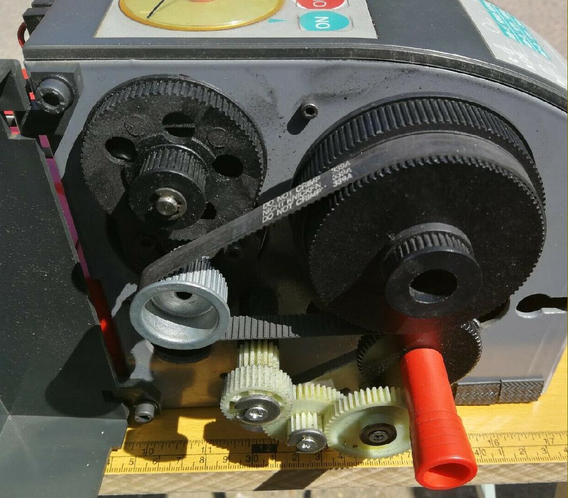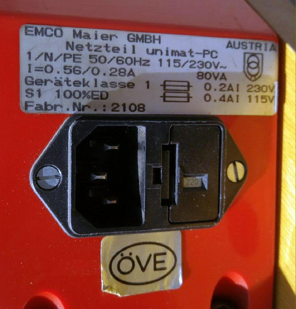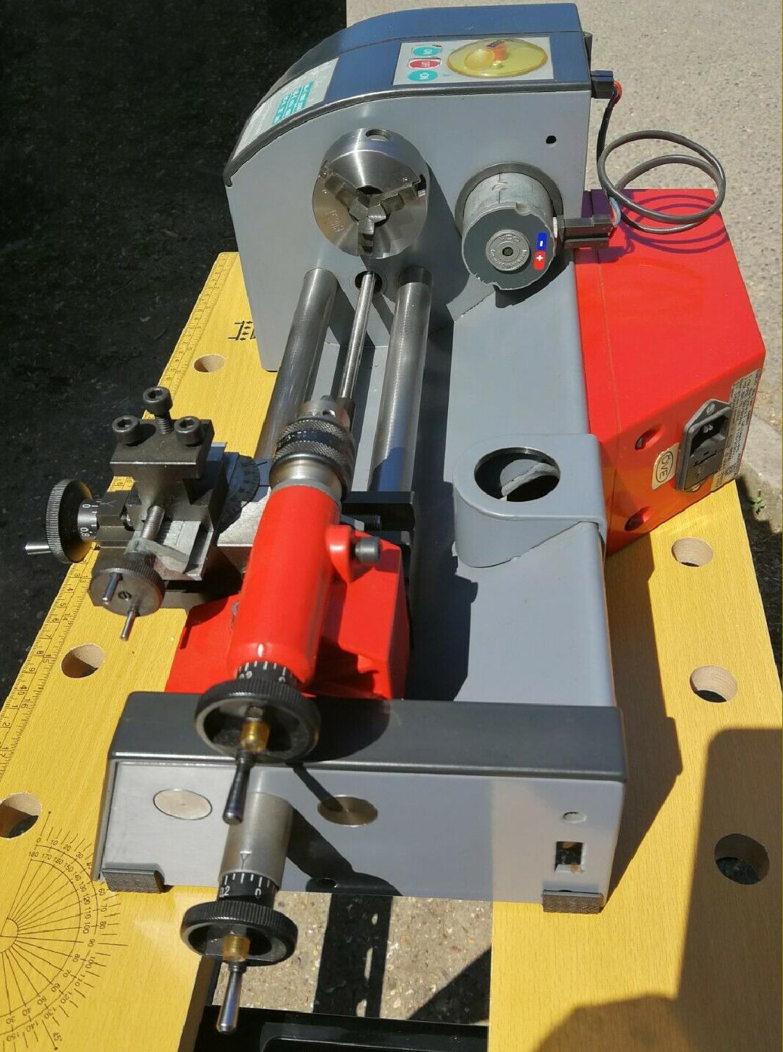 Emco Unimat PC "Basic" 2.1" x 7.6" (54 mm x 194 mm). The PC was a beautifully integrated design, with very rigid, large-diameter bed bars and variable-speed drive; the latter, combined with a three-step drive by toothed belts that could be arranged to drive the spindle directly or though an intermediate pulley set, gave three speed ranges: 20 to 300 rpm, 300 to 1200 rpm and 1200 to 2200 rpm. The motor - happily a switchable 115 volt/230 volt and dual 50/60 Hz unit - was confusingly referred to by the makers as having a maximum "absorbed power" of 80W, a "maximum power output" of 50 watts and a "continuously absorbed power" of 60 watts. Whatever the output, it was only just adequate. At the back of the lathe can be seen the electrical control box - a detachable unit. The spindle, with a bore of 12.2 mm was threaded M14 x 1 - as was the tailstock barrel in order to mount screw-on chucks and rotating centres - there being no Morse-taper fitting. This lathe was available, like others in the Emco range, with a computer control system running on a standard PC; a kit was offered, containing two stepper motors, a power pack and drive belts, to make this conversion possible. Unfortunately, it was very expensive and, compared to previous small Emco lathes, relatively few were sold. Of all the miniature Emco lathes this is almost certainly the best you can buy but, because of their rarity, and the inclination of owners to hang on to them, they are very hard to find.