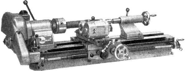 Continued: Hardened and ground, the threaded nose of the headstock spindle (with either a 1.125" x 12 t.p.i or M27 DIN 800 thread) carried a No. 2 Morse taper and was bored through 9/16" and ran on taper roller bearings. The motor was fastened to the back of the headstock (making a self-contained unit) and drove, via a jockey pulley, to an overhung pulley on the end of the spindle with the arrangement proving seven speeds 110 through 250, 360, 550, 820, 1100 to a useful maximum of 1700 rpm. All speeds were belt driven and a proper backgear sacrificed in favour of allowing the spindle to be slid in and out of the casting to give a quill feed travel of 1.75 inches - necessary when mounted vertically and used as a milling and drilling machine. A disadvantage of this arrangement was the bottom speed of 110 rpm, a rate that would have cautioned all but the most experienced of amateur owners against screwcutting or attempting to turn large diameters on a faceplate. The adaptation to vertical milling involved unbolting the headstock and motor unit and fastening it to a replica of the lathe bed that bolted to a substantial cast-iron bracket at the rear of the "bed proper". Unfortunately, no screw-feed was provided to move the head up and down the column and coarse settings involved bolting and unbolting the unit while supporting and moving it by hand. Tumble-reverse was fitted to the changewheel drive though, strangely, screwcutting gears were charged as an extra, at least for the UK market, and no screwcutting gearbox was listed. However, to compensate, the lathe did have the advantage, unusual in so small a machine, of a very fine feed to the carriage by a belt drive from headstock spindle to a 2-speed gearbox on the end of the leadscrew. A standard and very useful fitting was a graduated handwheel on the leadscrew end. By 1962 the angular-styled Mk. 3 "Series 3000" was in production and being sold in three versions. The best was the MQ-3100, with a full screwcutting and feeds gearbox and equipped with two headstock-motor units - so it was always ready for vertical milling and drilling. A cheaper version, the cheaper M-3100, was mechanically identical - and with two headstocks - but with changewheels for screwcutting. The entry-level model, the M-3000, came with changewheels and only one headstock that had to be shared between lathe and milling column. Unchanged at 9/16" bore and with a No. 2 Morse taper centre the spindle nose was hardened and carried either a 1.125" or M27 spindle nose. However, on the better-specified lathes supplied with a non-sliding quill assembly in the lathe headstock (i.e. the "Maximat Compact" with a powered milling head in place) there was more room in the casting and they were equipped with a larger assembly carrying either a 1.5" x 8 t.p.i or M4 x 39 metric nose, a No. 3 Morse taper and a 20 mm (3/4") bore with an adaptor fitting to accept ordinary draw-in L20 collets. In all cases the spindle now ran in a Class 7, double-row roller bearing at the front and two Class 7 angular-contact (ball) bearings at the rear while the overhung pulley that drove the spindle ran on two angular-contact ball bearings. However, variations on this theme have been discovered, and it is entirely possible that not only were lathes originally supplied with a vertical-milling head (MQ-3100 and M3100) fitted with a "lathe" headstock that lacked the sliding quill mechanism, but the headstock supplied for milling was altered to accept collets similar to the ER type, which had a much better grip on milling cutters. With the new headstock, spindle speeds dropped in number from seven to six and, with a 1725 rpm, 0.5 hp 1-phase (or 3-phase) motor, these were: 125, 210, 370, 620, 1100 and 1900 rpm. Alternatively, a slower single or three-phase 0.5 hp, 1120 r.p.m. motor could be ordered to give: 80, 140, 250, 420, 720 and 1250 r.p.m. Again, variations from the catalogue specification have been found amongst production machines with some examples using a 1/2 h.p. split-phase, single-phase motor (fitted with a 560 mf start capacitor and a 40 mf run capacitor) on both the lathe and milling head. Of the two speed ranges, the slower 80 to 1250 rpm would have been the better for both screwcutting and large-diameter turning - if still nearly 100% too fast on the bottom speed for comfort and safety. However, in later versions of the Maximat (the much better known V10 and V10P Models) things were considerably improved with the employment of an all-geared headstock driven as standard by a 2-speed motor - in addition to being fitted with the 4 or 6-speed all-geared milling head from, respectively, the U2 and FB2 millers. Fitted with 2 T-slots arranged to run at a right-angle to the bed ways the robust 10" x 4.75" cross slide was adapted from that on the Mk. 2 and retained the feature whereby the top slide could be slid backwards and forwards in the slots and bolted down in any position - this part of the design continuing unaltered on the V10 series in later years. Able to generate 24 threads and feeds, the Norton-type screwcutting gearbox featured the standard controls of a sliding tumbler lever on the front, a three-position lever on the top and a push/pull knob sticking out of the end cover to select either screwcutting or fine feeds for sliding and surfacing. As an indication of the quality of the lathe, the screwcutting gearbox was fitted throughout with ball bearings and the leadscrew (0.75" x 8 t.p.i Acme form) was both hardened and ground and could be adjusted so that it was tensioned between the angular-contact ball bearing in its support brackets. Although models equipped with screwcutting by changewheels had an entirely adequate range of fine feeds, Emco persisted in fitted a modified version of the original belt-drive 2-speed feed gearbox. Based on designs commonly employed from the late 1800s until the 1920s, the new box held an expensive ratio-lowering worm-and-wheel assembly together a pair o