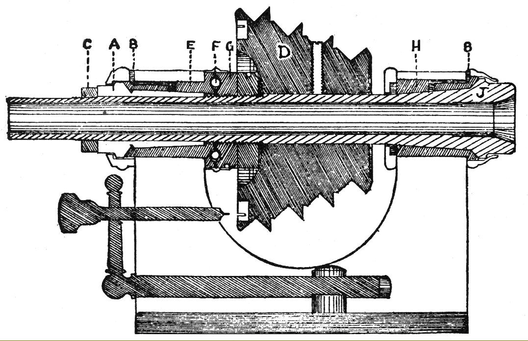 Just as, during the latter half of the 20th century, many Far Eastern manufactures copied Western designs of all kinds, in the late 1800s the success of the American Webster Whitcombe watch lathe (the type is known as the WW) caused factories in Europe to develop their own versions - and this is how the Hammel & Riglander came about. A well-known supplier of materials and publications relating to watch and clock repair, Hammel, Riglander & Co. would almost certainly have sourced their lathe from Germany, with production by either G. Boley or Lorch - though the most likely appears to have been Leinen, the latter a Company who also branded their products "Boley & Leinen" - although they had nothing to do with the quite separate Company of G. Boley. According to the Ward Goodrich book "The Watchmakers' Lathe" the Hammel & Riglander was: "...having a considerable sale in America, although it is made in Europe". Fitted with a traditional WW-type bed of heavy construction with a flat top and bevelled edges to locate the headstock, slide rest and tailstock it is likely that the lathe would have been offered with various bed lengths, the shortest supported on a single foot (as shown below) and the others on a pair. Holding 8 mm collets the headstock spindle ran in adjustable cone bearings - through with the addition of a ball race to take thrust. a 4-step cone pulley was fitted, to take the usual round belt, with a ring of 60 division holes drilled in the outer face of the largest diameter.