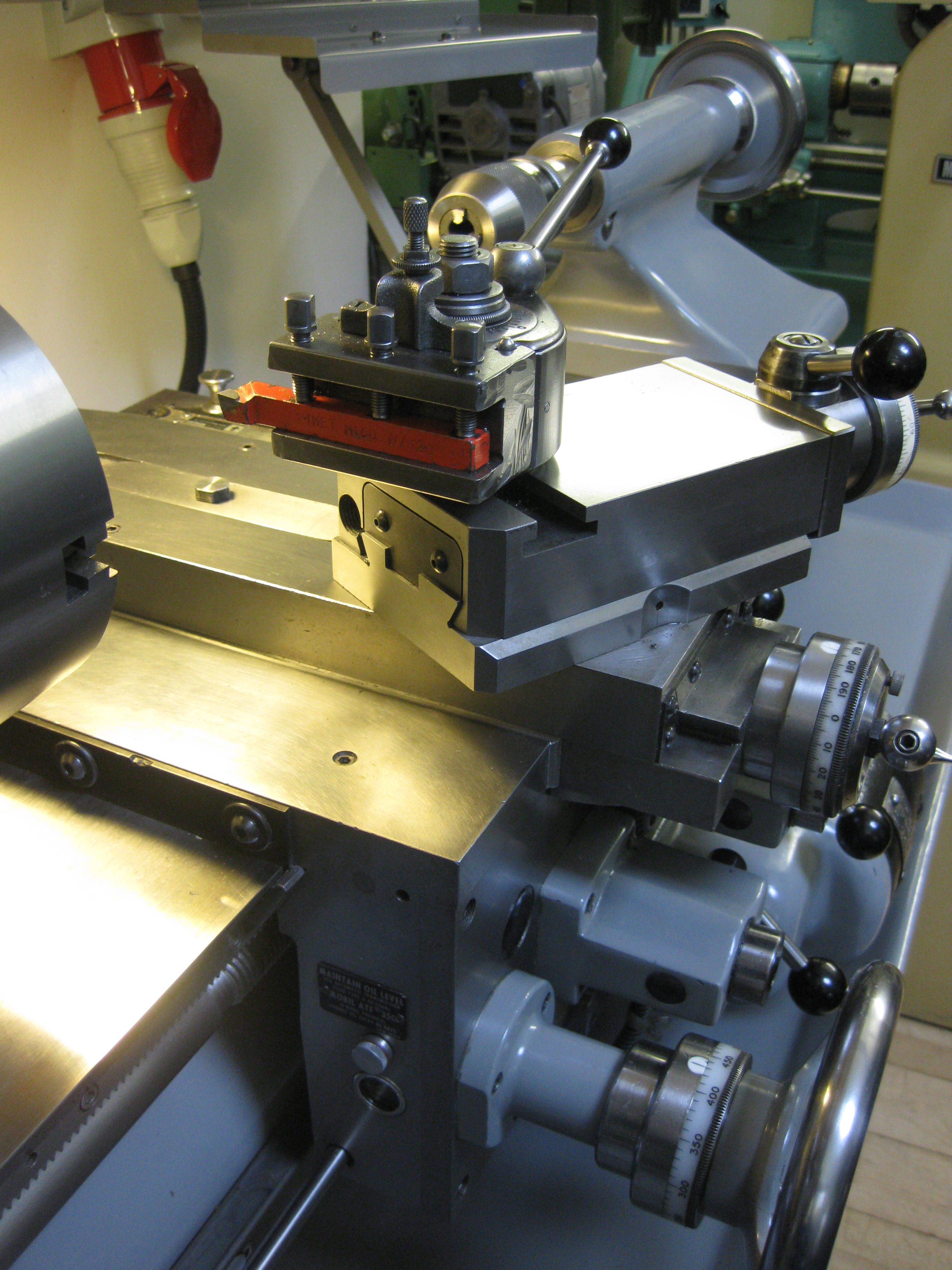 The Screwcutting gearbox is able to cut 27 different threads in ex-factory trim and numerous additional ones when fitted with the "Outside Change Gears", and banjo unit, which is supplied as standard with every machine. To extend the threading range further, a wide range of supplementary gears are also available. The lathe incorporates a most useful "threading stop" and, because there is no danger of running the thread too far or too deep, Hardinge modestly request that screwcutting speeds be limited to 1000 rpm…... A metric conversion set is also available and supplied with an extra-large changewheel cover.