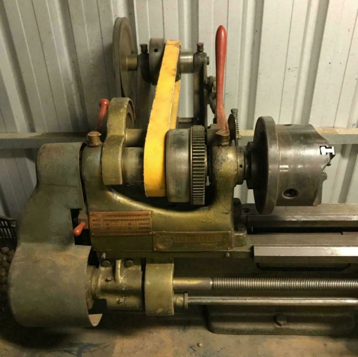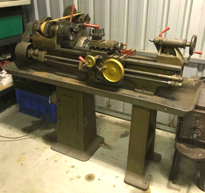 Mars Lathe were made by the Mars Machine Tool Manufacturing Co. Pty. Ltd. of Bridge Street, FortitudeValley, Brisbane, Australia a company originally known as Rapson and Dutton. The firm produced a wide range of machine tools and other products including millers, shapers, planing machines, radial-arm drills, boring mills, hoists, bandsaws and even such items as diverse as paper guillotines and diesel engines. In advertisements they described themselves as ''Marine, Diesel and Aircraft Engineers'' and claimed expertise in the ability to design and manufacture ''Special Machines for all Industries''. One advertisement even boasted: "The widest range of machine tools in the Southern Hemisphere". As with many other company's, various brand names were used to market their products including, in the case of their 5-inch lathe, "Conrik" and "Great Scot" One machine, a shaper, was known to have been named after a particularly skilled mechanic/fitter, Tom DuBoise, who was with the company from 1932 until 1964, while another long-serving member of the workforce was Vic Marsh; he joined the organization in 1924 and retired in 1964, having spent most of his time as the senior machine-shop supervisor. One of the lathe and other machine-tool designers was Bart Bulwinkel who worked in the drawing office during World War Two when, faced with a Japanese invasion, the factory was running three shifts a day and working flat out to meet the urgent demand for machine tools from the Australian armed services. Being so catholic in their enterprises, it is likely that lathes played only a secondary role in the company's product range for, today, examples are rarely seen - and very little publicly literature seems to have survived. However, details of six models are available; the Junior, Venus, Jupiter, Mercury, Atlas and the 'Hercules' 5.5-inch and the 'Mars 6-inch' - the latter two both very close in capacity yet quite different in the details of their construction: The 5.5 inch centre height by 24-inches between centres 'Hercules' was described by its makers as the 'Little Giant of the Lathe World. Like the English Raglan 'Little John', it was heavily constructed, with a genuinely-useful specification for its capacity and not just a small lathe with headstock and tailstock 'built up in the sand' to stretch the capacity of a lighter, cheaper machine. The 49-inch long V-way bed was ground-finished to within 0.00025'', had diagonal braces between front and rear ways and was fitted as standard with a 7-inch long detachable gap section - this increasing the capacity on the faceplate from 11 to 16 inches in diameter. At its headstock end the bed dipped down below the gap to form a mounting foot that bolted to a cast-iron plinth with a single (rather small) storage cabinet. Because the bed foot beneath the headstock was rather short it left a sizeable proportion of the casting, on the outboard end, cantilevered away from solid support. A generously proportioned and usefully-deep sheet-steel chip tray was fitted as part of the standard equipment. Running in parallel-bore bronze bearings that could be adjusted by being drawn into their tapered housings, the high-tensile steel headstock spindle was bored through 0.75-inch, had a No. 3 Morse taper nose and axial thrust was taken against a ball race. Interestingly, the makers claimed that: ''All Headstock parts are Dynamically Balanced to ensure vibrationless running at all speeds''. However, whether the same thoughtful precautions were taken with regard to the unguarded countershaft assembly, neatly built onto the back of the bed behind the headstock, is unknown. A V-belt took the drive from motor to the 3-step upper pulley with a flat-belt making the final connection to the headstock spindle. Making a profit on the sale of electric motors cannot have to appealed to the company's accountants for customers were expected to provide their own, the makers recommending a 1400 rpm, 1-hp unit that, in conjunction with a conventional 6 : 1-ratio backgear, gave a speed range from approximately 45 to 850 rpm. Drive by changewheels from the headstock to leadscrew was through a tumble-reverse mechanism and, with the standard set of hobbed gears, a limited range of pitches ( 8, 9, 10, 11, 12, 13, 14, 16, 18, 19, 20, 24, 28, 32, 36 and 40 t.p.i) could be cut. To obtain an especially fine feed, generate metric or other special pitches, gears with 63, 73 and 100 teeth were available at extra cost. A separate 'powershaft' was connected to the left-hand end of the leadscrew by a permanently-engaged gear; the shaft drove the sliding and surfacing feeds in the apron through the usual worm-and-wheel arrangement with selection and engagement by a single lever that could be lifted into one of two slots. The design of the safety-interlock mechanism (that presented simultaneous engagement of power feeds and screwcutting) was unusual: instead of being hidden away behind the apron's front wall it was fitted to the outside where, one must assume, it must have proved a tempting device for apprentices to mess with or even remove - with potentially disastrous consequences. On the left-hand face of the apron was a swiveling casting, almost identical to that on the Mk. 1 Colchester Student, that acted both as a swarf guard for the leadscrew and a mounting point for the dial thread indicator. Continued below: