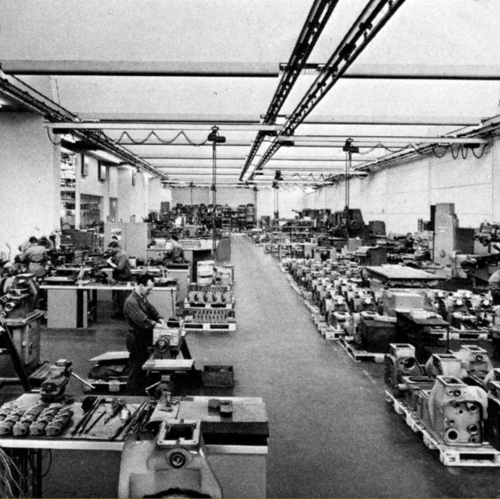 Universal Table Part 24.01 (590 x 310 mm) and Part 24.02 (680 x 395 mm). With a built-in dividing unit, this was designed to assist with the setting of complicated jobs and embodied swivelling, tilting and rotary motions, Works could be machined on five sides without the need to re-clamp.