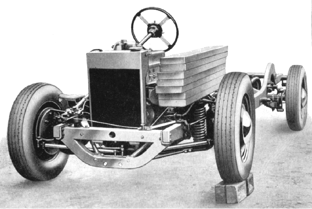 With the benefit of hindsight, the 1940s Murad car project was doomed from its inception for, even if the design had been radical enough to have attracted an enthusiastic cliental (it was really rather ordinary) and been developed as far as production, it could never have competed with the cost-cutting economies of scale enjoyed by the big Midland motor manufactures. It was, however, a brave effort with the engine designed and built by in-house (it had an unusual lubricating oil-to-water heat exchanger) coupled to a bought-in Moss gearbox with the drive taken though a De-Dion-type rear axle, the whole being mounted in a Rubery Owen chassis with a coil-sprung beam axle at the front, a Marles steering box and semi-elliptical cart springs at the rear. A surprising offering for the decade was air-conditioning. Because the Moss gearbox was mounted beneath the gap between the front seats an usually short gearlever could be used instead of the long wobbly stick so common in family cars before remote linkages or column changes became popular. The position of the gearbox required the use of a short propeller shaft to connect it to the clutch and this caused two problems: the additional inertia of the shaft was sufficient to defeat the gearbox synchromesh and double-declutching had to be employed to get a decent change. Where the prop shaft entered the gearbox an additional support bearing was required - and this tended to overheat, such being the nature of the grease-filled ball races available at the time. Although the engine produced a relatively healthy 48 b.h.p. at 4000 r.p.m. - and was capable of running up to 6000 r.p.m. - above maximum power the torque fell off rather more steeply than was deemed desirable. Being an engineering company, in-house facilities for development were, of course, pretty reasonable and even included a dynamometer that was employed in an extensive research effort to improve the engine. It was notable that the motor responded best to just one make of spark plus, KLG, where an extra 3 b.h.p. was gained through their use - the other makes being described, brutally, as: "no use at all". During the 1940s the design and prototyping of the engine was reputed to have cost in the region of £50,000 - thought this is suspected to have included the provision of all the special facilities required, including equipment for the manufacture of white-metal shell bearings. The latter was an unbelievably wasteful thing to have attempted - such items being available cheaply off-the-shelf in the form of well-proven "Thin-wall" bearings from Vandervell Products. Although permission had been granted to build two prototypes during the war it is thought that only one was completed and this was not registered, as KPP 618, until January 16th, 1948. This car was taken on a 2,000 mile test drive round Britain and was found to have no power over 4200 r.p.m., thought with the motoring conditions of the time that can hardly have been a serious shortcoming. In an attempt to improve engine breathing, funds were requested to redesign the valve gear; this appeal was referred to the Directors of the Company who said curtly, "No more money." and that was, effectively, the end of car development for Murad. However, the prototype car remained in the hands of Mr. Murad until 1964 being registered for road use almost continuously through two decades. Pencilled onto the cover of perhaps the only surviving catalogue is an inscription by Murad: "In 1948 the car was fully tooled for production and we held orders for £5.5 million. The project was destroyed by the "nit wits" who shouted "We are the masters now" and sang the Red Flag in the Mother of Parliaments." Mr. Murad would have been even more incensed if he'd known that the socialist government was, at the same time (under the direction of the communist-inclined and Marxist believer Stafford Cripps) busy giving the Russians the secrets to the Rolls-Royce jet engine - so enabling MIG fighters to take on and beat Allied aircraft in the Korean War. As Stalin said, "What fool will sell us his secrets?" Answer: British socialists..