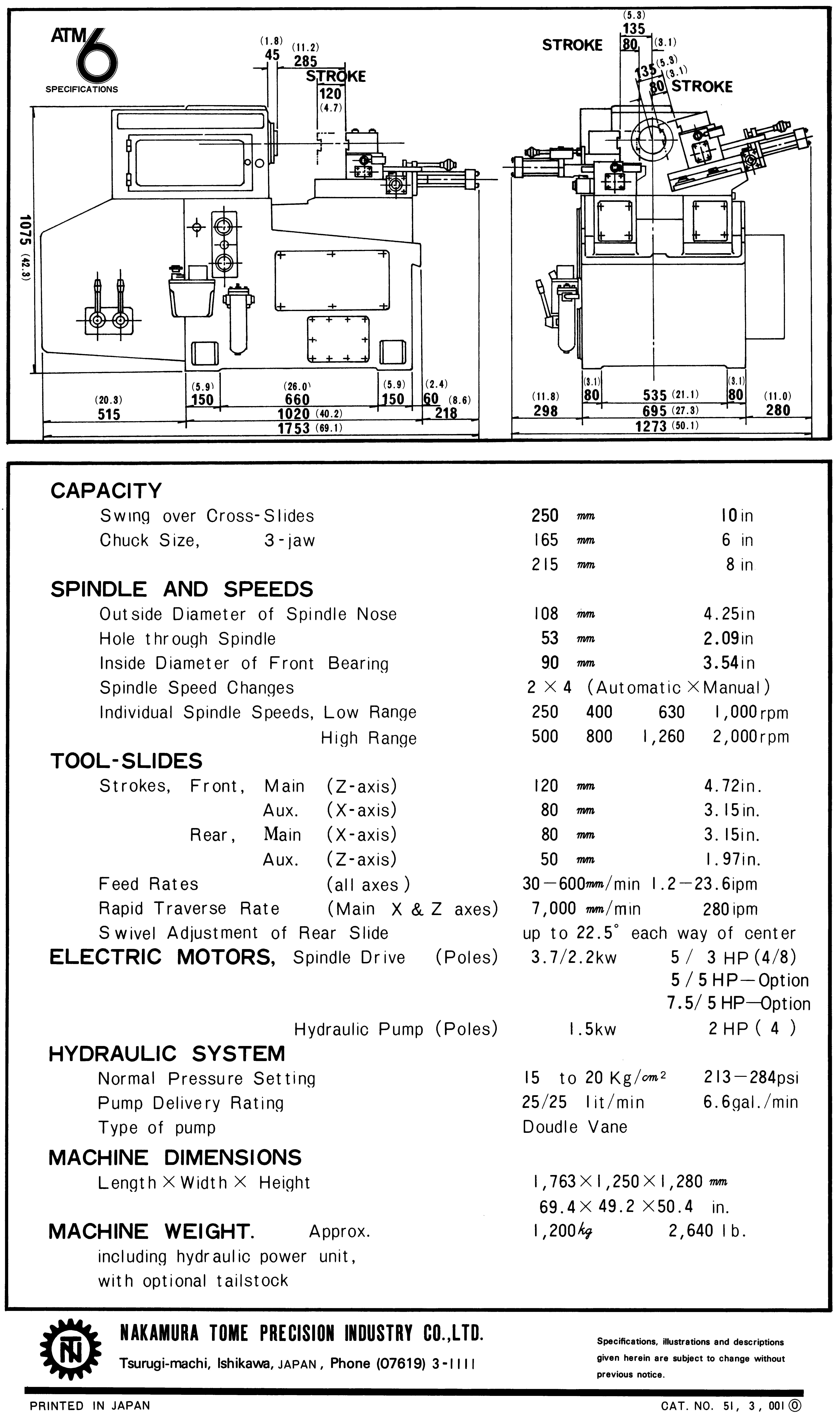 Nakamura Type ATM-6 Single-spindle Automatic Lathe--Japan