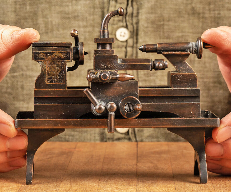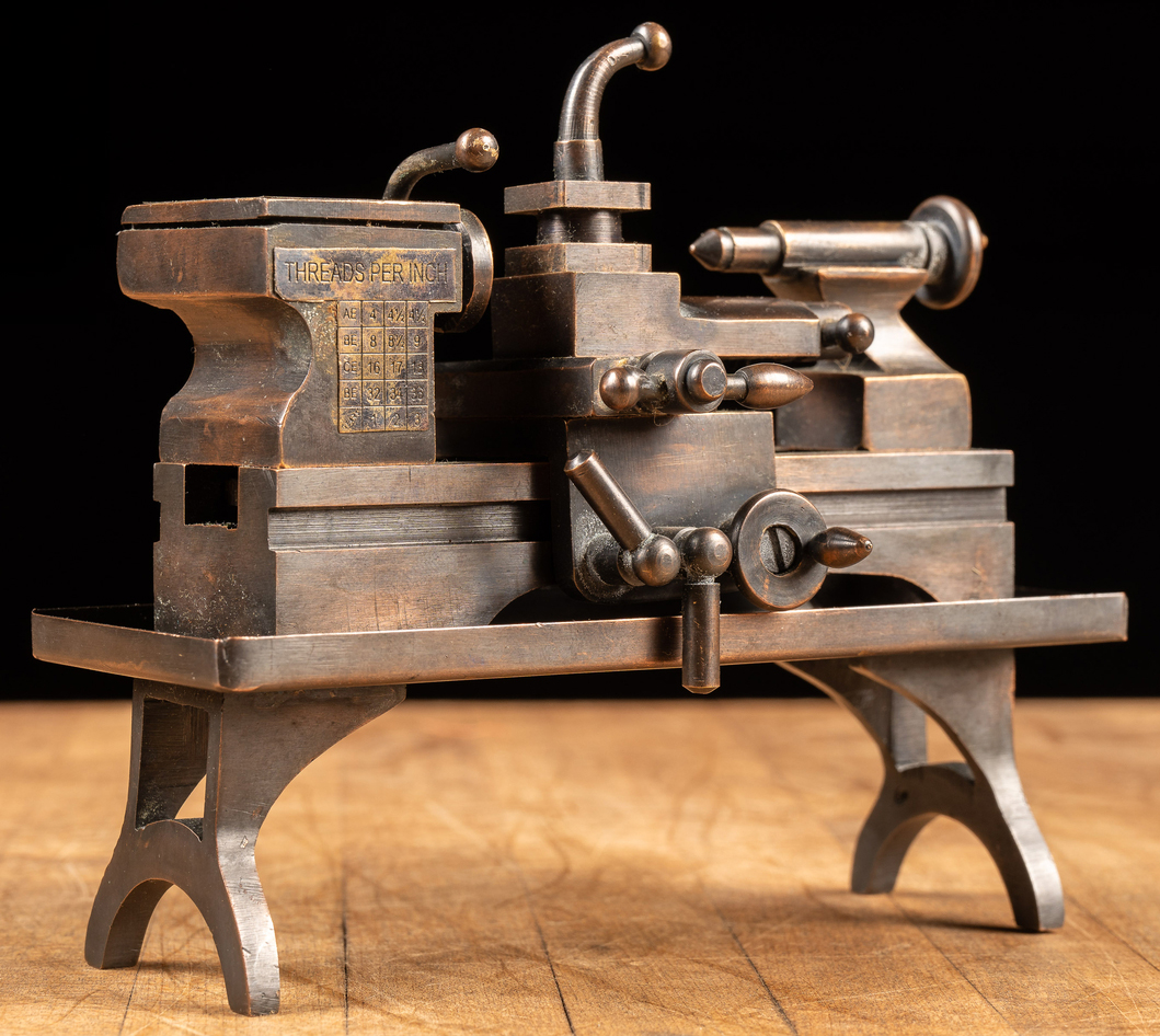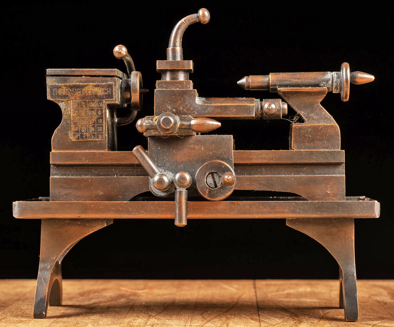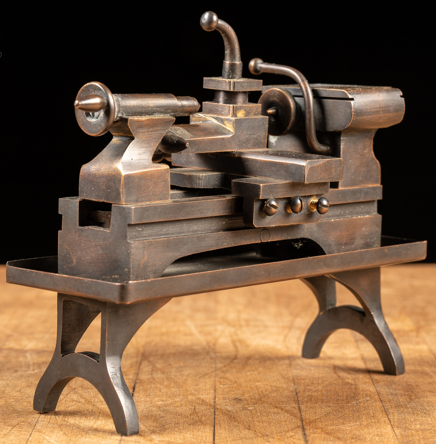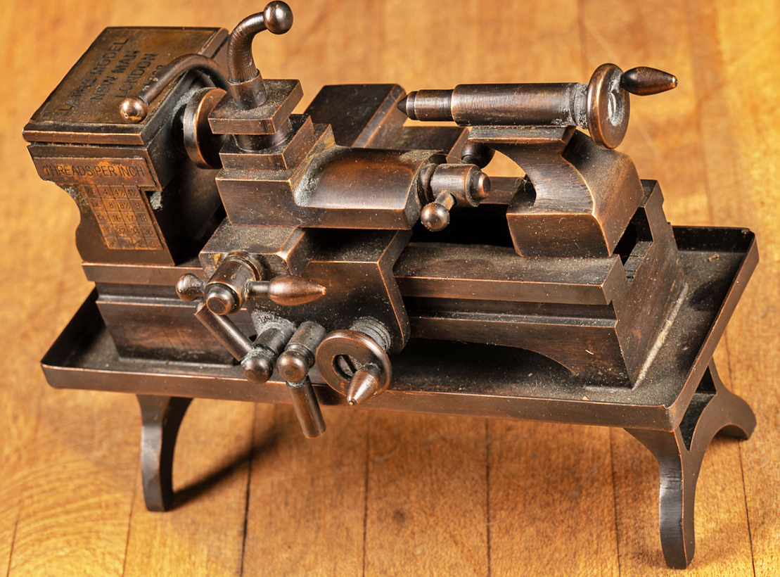 With an unknown provenance, this rather splendid model lathe is marked on the top of its headstock "LATHE MODEL NEW MAN LONDON 1868" However, the front used is certainly not from the era and the likelihood is that this was a kit, supplied perhaps in the 1950s, for home completion. It might possibly still be for sale on this website.