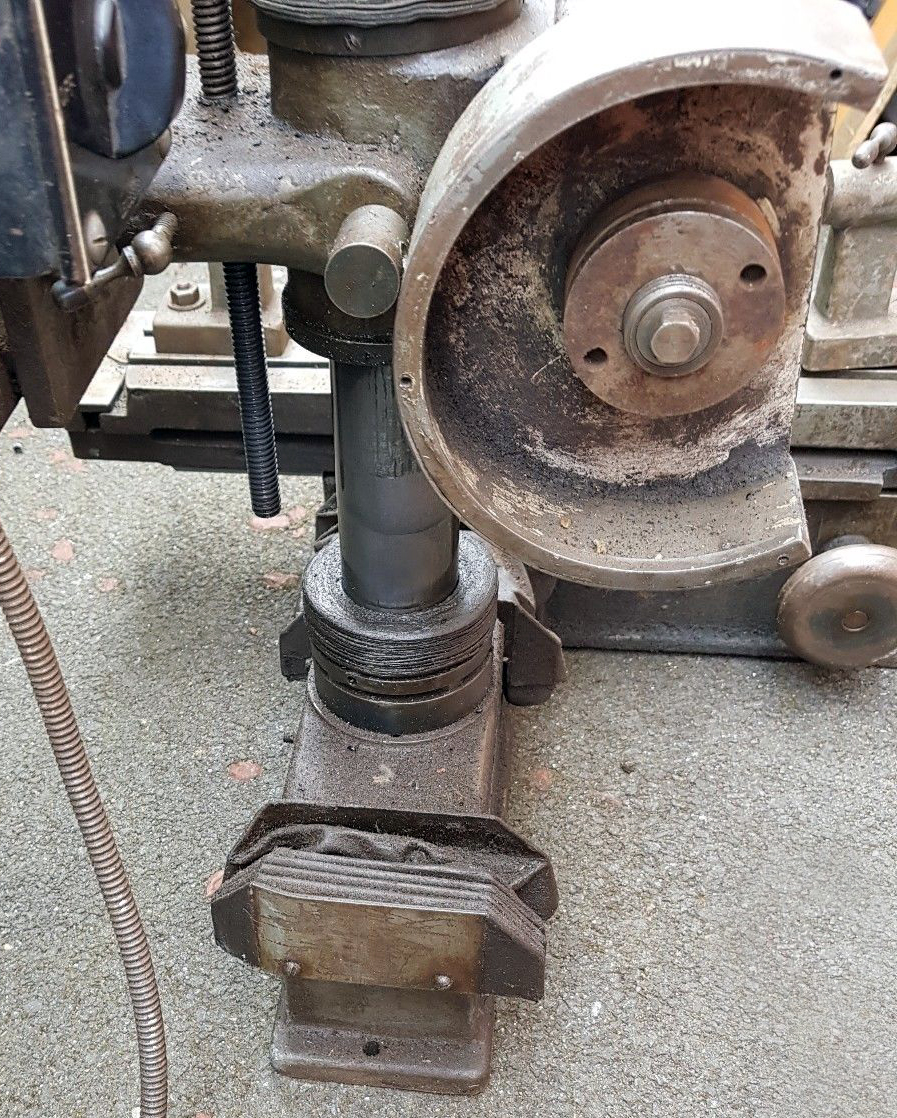 The twin T-slot table ran on flat and V-ways and could be set over 15 degrees each side of zero. The slides were all protected by bellows and the down and cross-feed handwheels purchased economically from Myford - their original use being for the end of the leadscrew on Super 7 lathes.