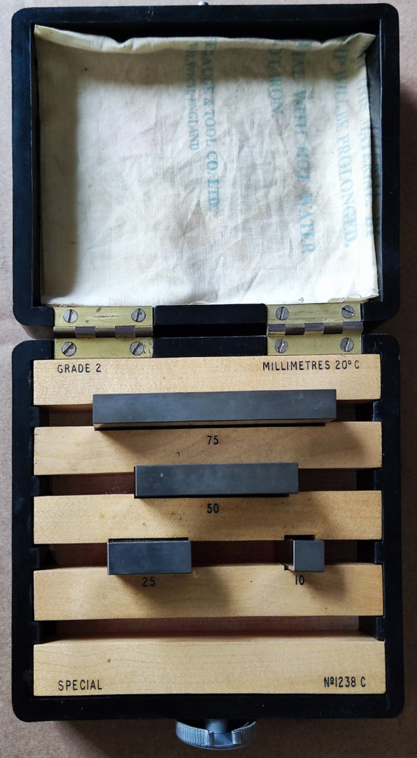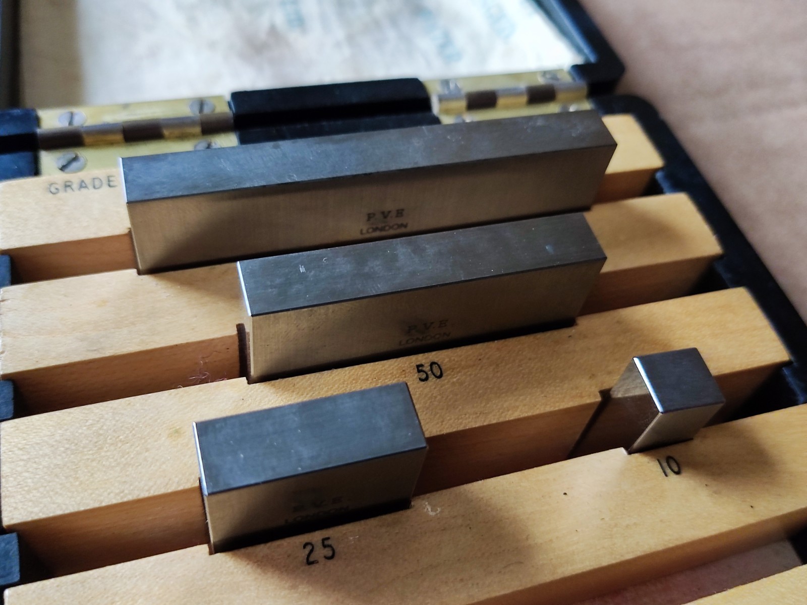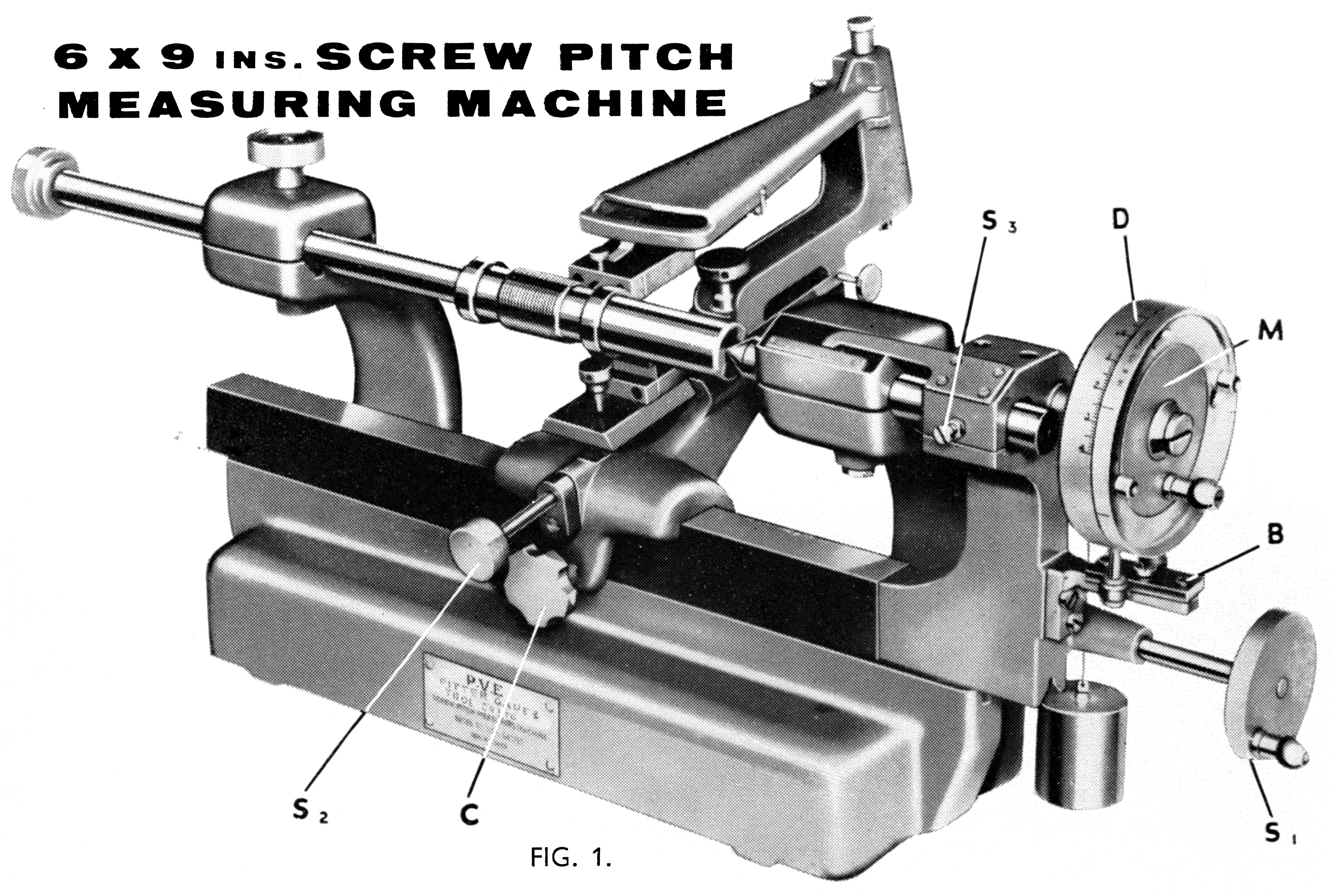 Thought to have been founded in the early 1920s, the Pitter Gauge & Precision Tool Co. was based in Upper Market Street/Upper Market Street, Woolwich, SE London and operated until 1970. Another address associated with the firm was 49 Kingston Road, Leatherhead (Surrey) from 1944 to 1946, though local directories don't confirm a lasting presence there, and it might have been a temporary WW2 location. Known originally (from 1914) as the Pitter Ventilation & Engineering Co. (P.V.E), and based in Woolwich, the company also used the "P.V.E." trade mark. Somebody must have noticed that the initials, if expressed in Latin (and so written on some of their logos) read as Pro Veritate Exacta, meaning, rather aptly, in Latin, for "the exact truth". Items made by Pitter were usually stamped P.V.E. or "Pitter Guage" The Company's business concentrated on very high precision measuring and inspection equipment with products including slip gauge (gauge blocks) that were available in various grades e.g. Workshop, Inspection, and Calibration and all available with an NPL (National Physical Laboratory) certificates; thread measuring machines; length bars; screw, plug and special gauges; optical flats; high-precision comparators, and makers of the Eden-Rolt "Millionth" Comparator that was used to detect wear on slip gauges down to ~1 micro-inch. This was an NPL-designed, mechanical-optical unit with contemporary reports stating that the overall magnification was 20,000× with a replacement threshold of v˜ 30 micro-inch or 3 millionths of an inch (0.00003"). Slip gauges that had worn could be resurfacedand recalibrated (they were, of course, slightly reduced in size) and their new size recorded on a calibration chart, an item that was always supplied with every reconditioned set. If a gauge was too badly worn, it was always replaced by a new one, the maximum amount of wear that P.V.E, recommended being 30 millionths of an inch (0.00003 inch). The Eden Rolt Millionth Comparator used the web of a black spider (Oedithorax fuscus ) as the vertical scale marker ( a spider's silk was prized for its fineness and strength and made it ideal for the delicate crosshairs needed in optical instruments such as bombsights, telescopes, and theodolites)..