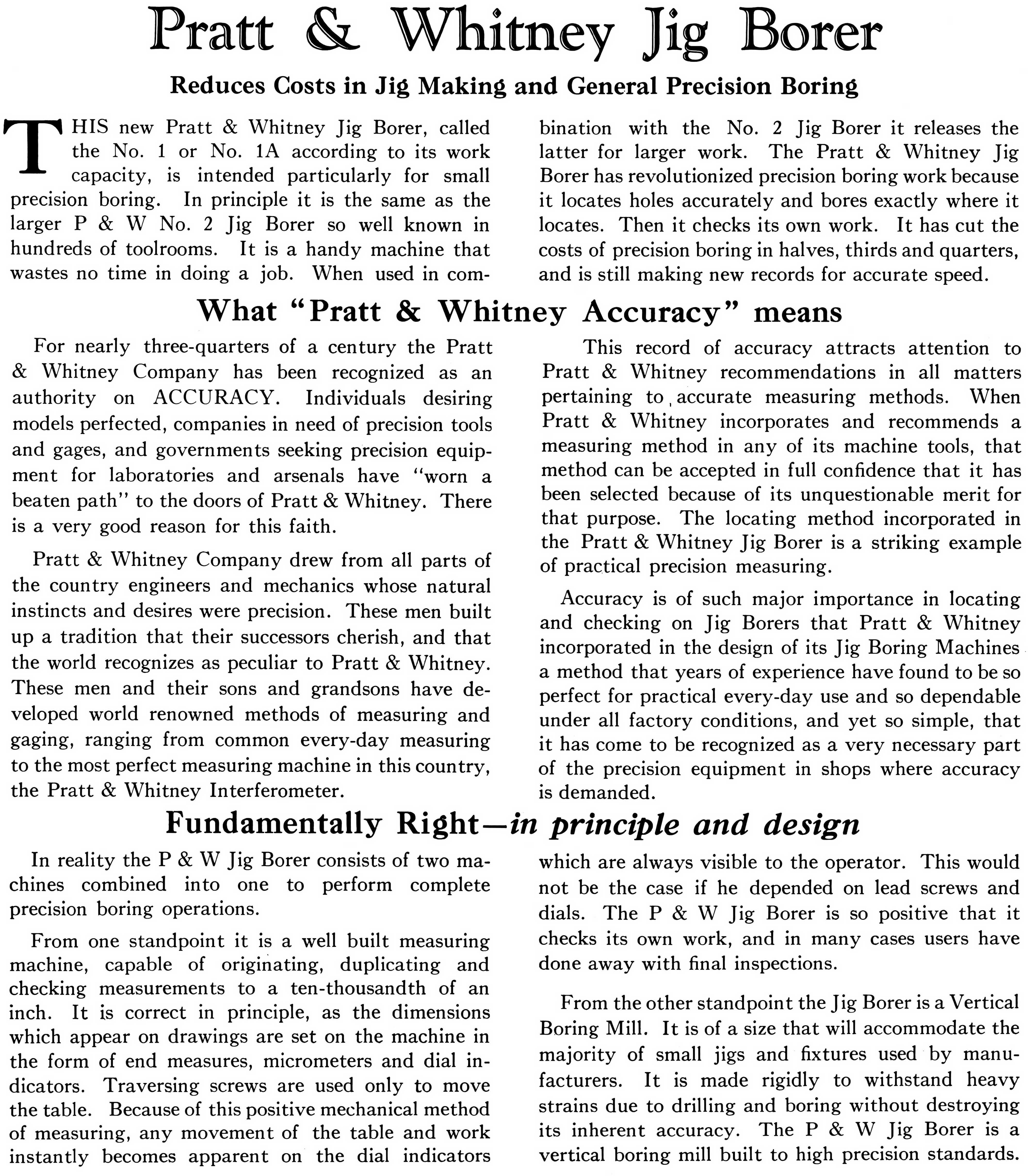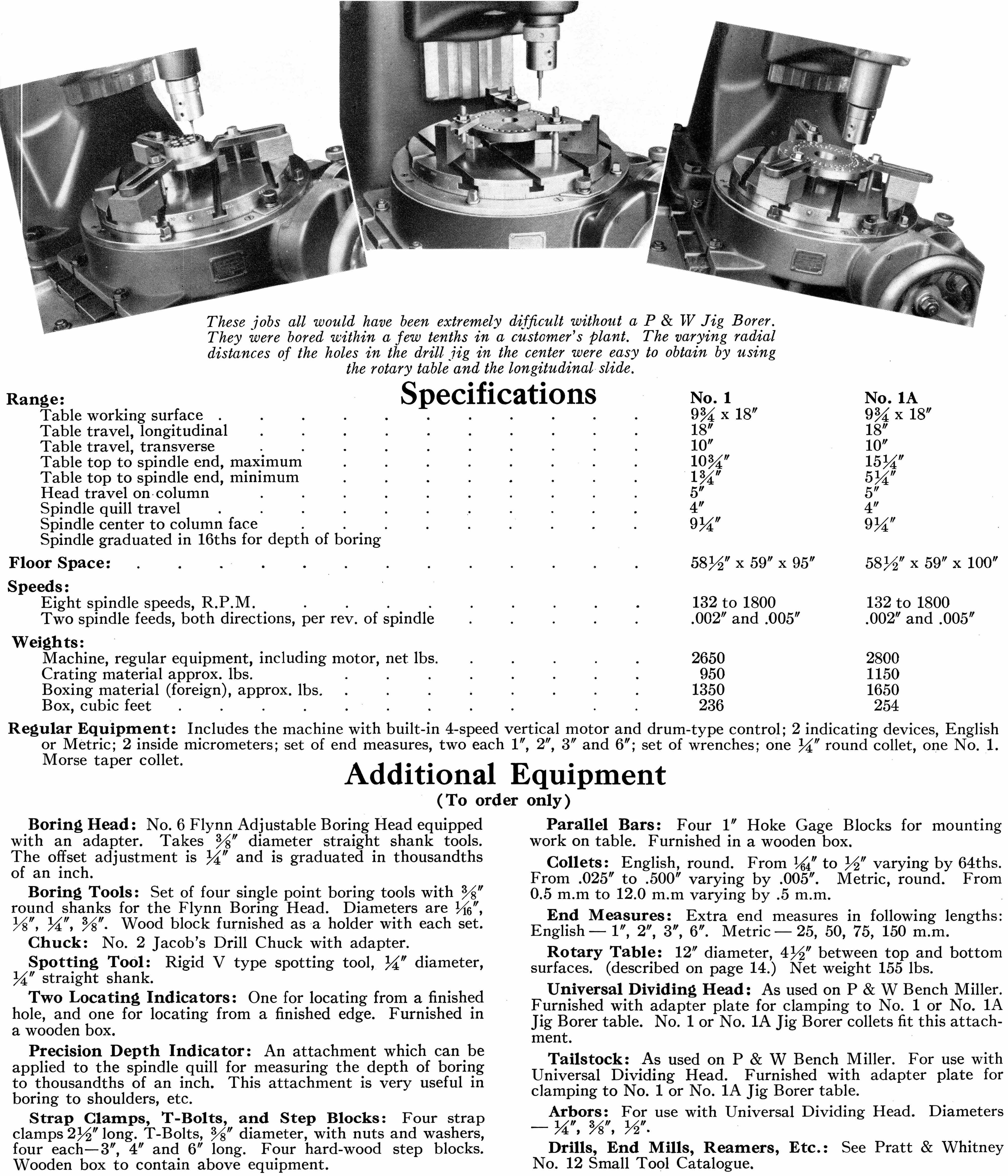 Pratt & Whitney Jig Borers No.1 & No.1A