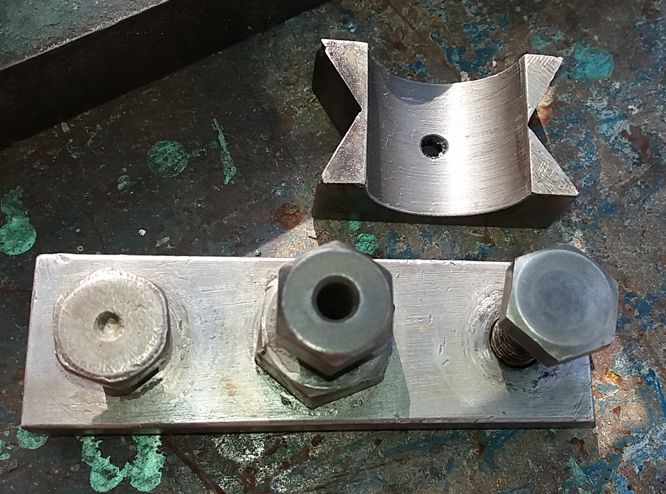 The third lathe has a very different and more cheaply constructed headstock that echoed mid 19th century small-lathe practice. While an ordinary bronze bearing was used at the front, at the rear the spindle was turned to a point, hardened and made to bear against an adjustable thrust bolt. Even though this was a cost-cutting shortcut suitable for a light-duty lathe, it was common practice at the time even for some lathes of higher quality such as versions of the English Hayward and Hines.