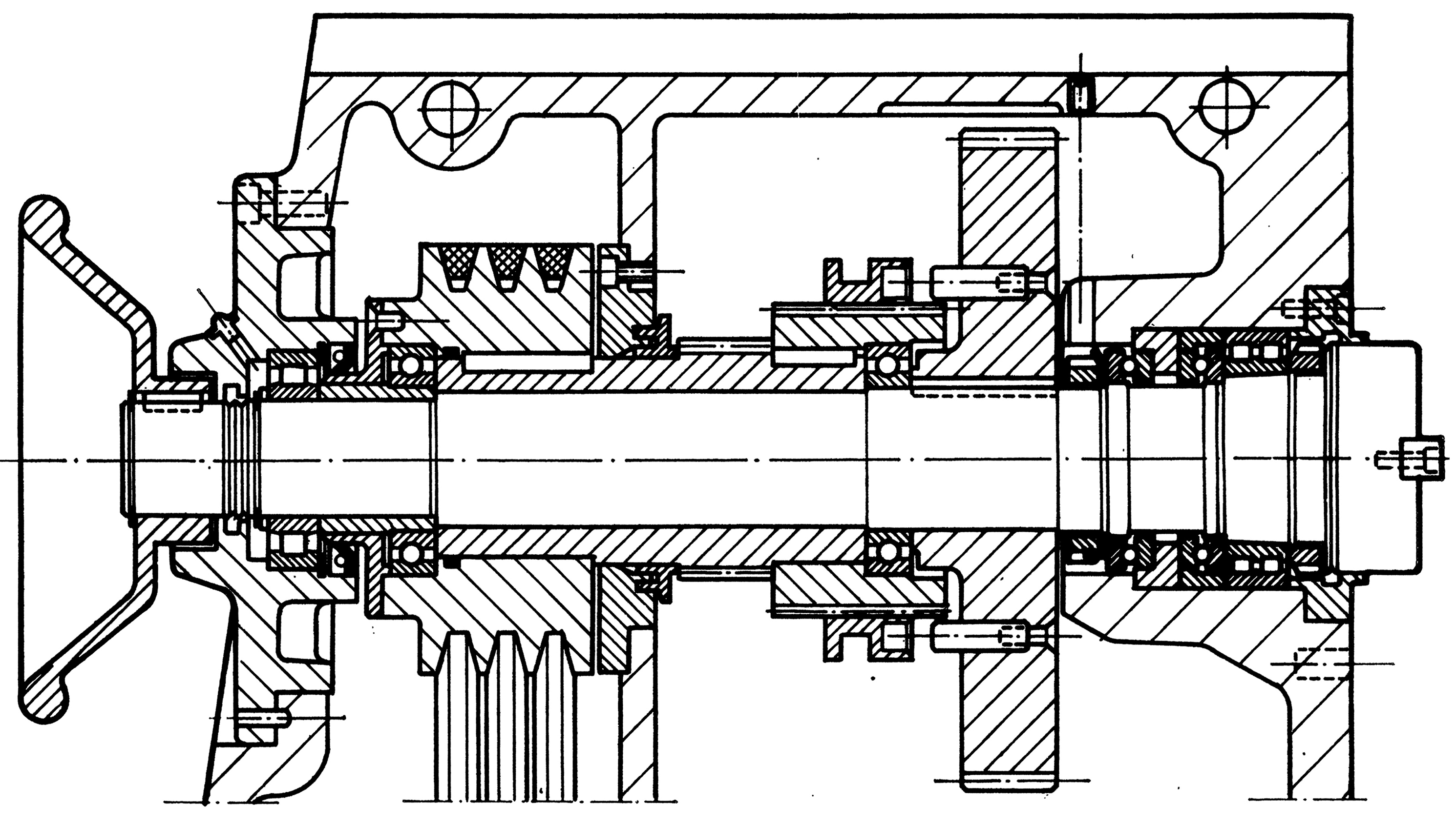 Section through the horizontal spindle