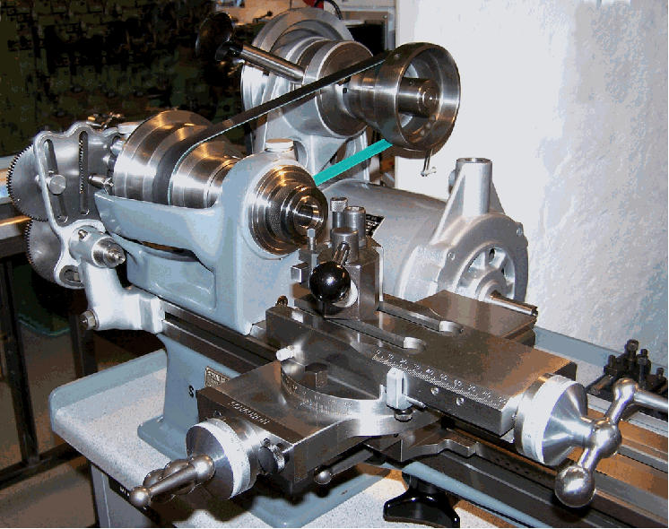 Schaublin 70 with one version of the makers screwcutting and power-feed attachment in place