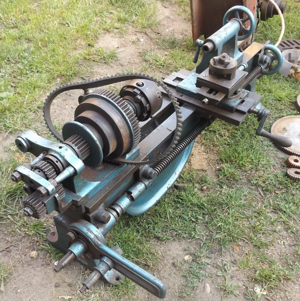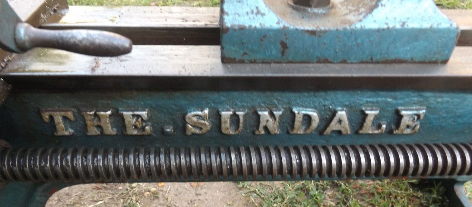 From its design "The Sundale", with its screw-on Selig Sonnenthal badge - would appear to have been made in the period 1880 to 1900. Some significant features, common on small to medium sized lathes of that time, included an outboard-mounted thrust bearing for the spindle; a narrow bed with an especially deep, detachable bridge section; crank handwheels on the carriage, cross slide and top-slide feeds (and a lack of micrometer dials); inverted V-ways on the cross slide; a bed-mounted rack of very coarse pitch, bolt-on hangers for each end of the leadscrew and a tailstock with the barrel section having fresh air beneath it. However, this particular example, with a double flywheel, full-length foot treadle with chain connectors (instead of flat-bar drive cranks) and machine-cut backgears, of better-than-average quality. The use of the logo "The Sundale" in inverted commas was a common way of disguising - while at the same time admitting - that this was a machine made not by the "Sundale Company, but by a manufacturer who, having supplied one of its larger agents or dealers had been persuaded to remain anonymous. With some resistance in the UK at the time to continental imports, there is a very good chance that the maker was German..