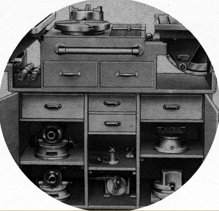 Maschinenbaugesellschaft Sinn, Dr. Ing. Ernst Cloos K.G. was situated in Sinn, a village near Wetzlar, in the west of Germany. The Company is best known for its range of superbly constructed universal precision milling machines manufactured from the 1950s to the 1970s. Of all the types made the most popular appear to have been the MS IIC and MS III toolmakers'. Established in 1858, when Albert Doering started a mechanical-engineering workshop on the "Sinner Hof" premises. A gifted tinkerer and inventor, he not only did repair jobs but also built machines of every conceivable kind to his customers' specifications, from steam engines and mining equipment to fire engines and pumps. From the early 1950s onwards the company expanded and the product range was widened to include heavy valves and fittings, wear plates for the mining industry, and milling machines. In the 1960s Doering was among those companies hit hard by the crisis in the lignite mining sector and, because of a production capacity beyond demand and increasing costs, the manufacture of heavy fittings and machine tools rose above the break-even point. A full history of the Company, with a number of interesting illustrations, can be downloaded here Based on the traditional Deckel, Thiel and Maho type of precision universal miller that had enjoyed such success*, the Sinn range of machines were ingenious, adaptable and versatile types. Lending itself to solving a multitude of machining problems, the secret of the type's success lay in its ability to mount a number of different heads - horizontal, standard vertical, high-speed vertical and slotting - in combination with a variety of tables - plain, plain-tilting and compound swivelling. All the heads could be driven backwards and forwards across the top of the main column to provide an in-out feed, while the tables bolted to a flat, vertical T-slotted table equipped with power longitudinal and vertical feeds. By juggling the choice of heads and tables, and utilising other accessories, a skilled technician was seldom defeated in his attempts to produce the most complex of milled and drilled components - and all to a very high standard of accuracy. A relatively complex machine, the Sinn was built in at least five and probably more models - the ones known including the MS-11-B, MS-11-D, MS-111-D, MS-1V-D and MS-1V-DA. The make was not widely promoted in the UK, even though the well-known and very successful machine-tool merchants W.E.Norton Ltd were responsible for handling sales. Although a MS-1-D version was almost certainly built, it was never listed in the UK and details of its construction are unknown; hence, the smallest example imported was almost certainly the MS-11-D. About the size of a Deckel FP1, it was offered (as was the full range) with a choice of either an ISA-40 or No. 4 Morse taper horizontal spindle that turned in high-precision taper roller bearings. The two smallest models had a longitudinal table travel of 17.5" and the two larger 24". While all three of the largest machines had 17.5" of lateral travel (on the head), the MS-11-D was limited to 12.5"; all machines had the same 17.5" of vertical movement. Each model had 18 spindle speeds that spanned 55 to 1630 r.p.m. (a range sufficient for the larger models but rather slow at the higher end for the smallest), with drive coming from a 2-speed 2 h.p./3 h.p. motor held within the base of the main column and connected to an oil-bath lubricated, 9-speed pre-selector gearbox supplied by Ortlinghuase. Built as a complete, slide-out unit support on gibs, the table and head-feeds' splash-lubricated gearbox provided infinitely-variable table feed rates that, although they varied model to model, were the same on all three axes: MS-11-D 0.032 to 19"; in inches per minute these were: MS-11-D 0.032" to 19"; MS-111-D and MS-1V-D 0.032" to 36" and the MS-1V-DA 0.032" to 28". Driven from the 1.5 h.p. feeds' motor, rapids on all three axes were set at 40 inches per minute on the MS-11-D, at 80 inches per minutes on the MS-111-D and MS-1V-D and at 48 inches per minute on the MS-1V-DA - the latter machine also being fitted with creep feed (from a separate motor) at the rate of 0.040" per minute. Although other types had feeds engaged conventional mechanical means, on the three largest models the hardened and ground feedscrews were engaged by electrical push-buttons through toothed clutches, these acting as a safety device and automatically disengaging at a pre-set torque load. With such a control system it was possible to reverse a feed instantly without having to first stop it, a great time-saver on repetition jobs; in addition, each axis was equipped with an electrical safety limit switch. As befitted the most expensive model, the MS-1V-DA had a more powerful (2 h.p.) feeds' motor, adjustment of the feeds by remote control together with hydraulic clamping of its guidways (an option that may have been available at extra cost on other types). Although a wide range of accessories was available the importers chose not to specify details, but it is known that each machine could be fitted with a number of different tables including two sizes of plain rectangular; a fully compound tilting, angling and swivelling type with a T-slotted top or one that tilted and inclined with a built-in rotary table. Also offered were box tables; a helical milling attachment driven from the table feed-screw; a hydraulic copying attachment; a number of different rotary tables and dividing attachments with indexing plates and a tool-storage cabinet. A number of different vertical heads were available including a slotting type and a standard vertical that has been found without and quill feed and also with three different sliding quill arrangements: one operated by a very Deckel-like rack-and-pinion feed driven by a short handle that slipped over a square stud on the right-hand side, another with a short, permanently-fitted handle to the left and a third by a 