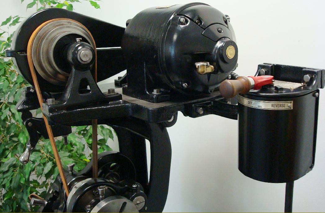 Restored to showroom condition by Dennis Turk in the U.S.A. this 9-inch south Bend Junior is fitted with the rare (and originally expensive) self-contained overhead drive unit. Another restoration by Dennis, of an 8-inch South Bend Junior, can be seen here