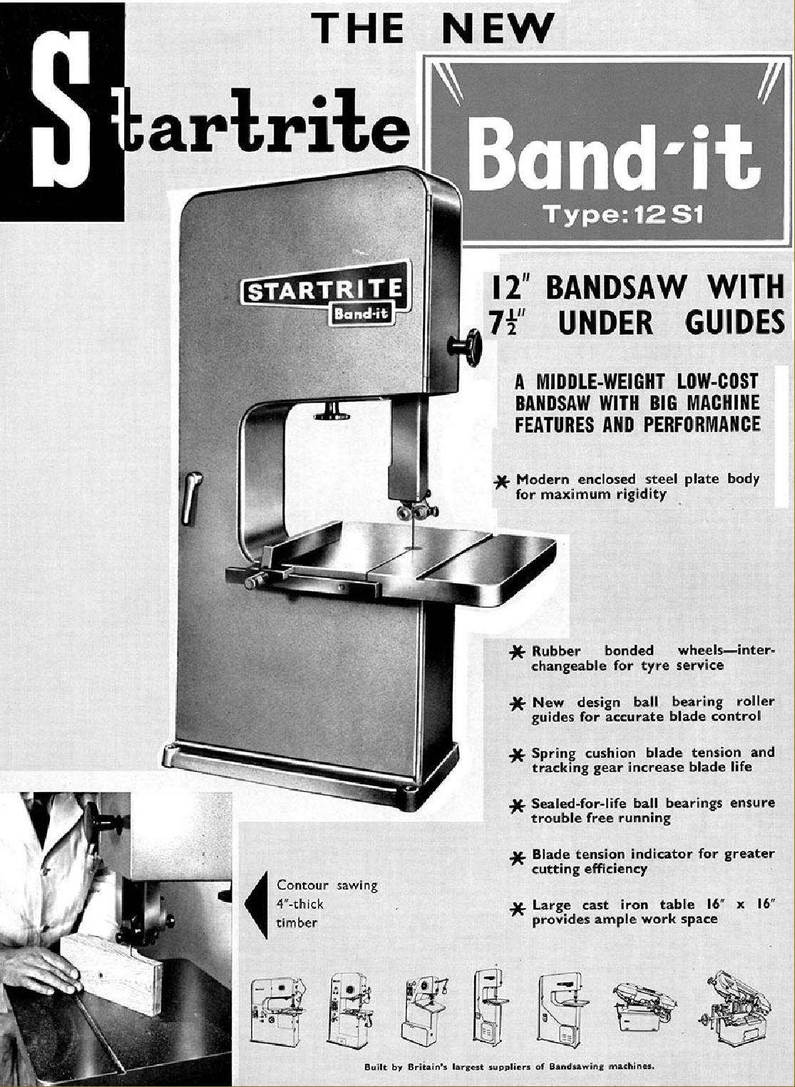 Startrite Bandsaws 1950s to 1960s Bandit 12S1, "Twelve", Sabre, Volant, Wespa, Meba & Habegger SP147, SP147S, SP147T