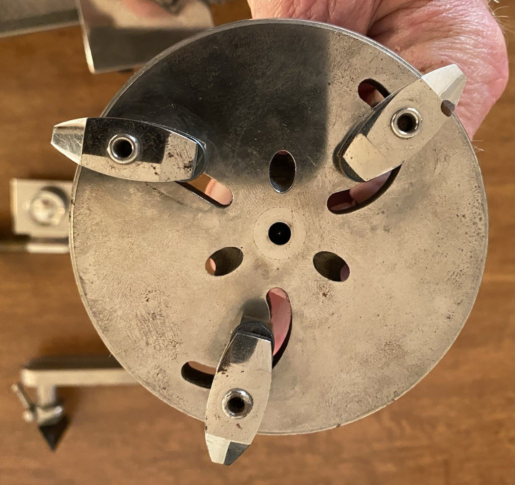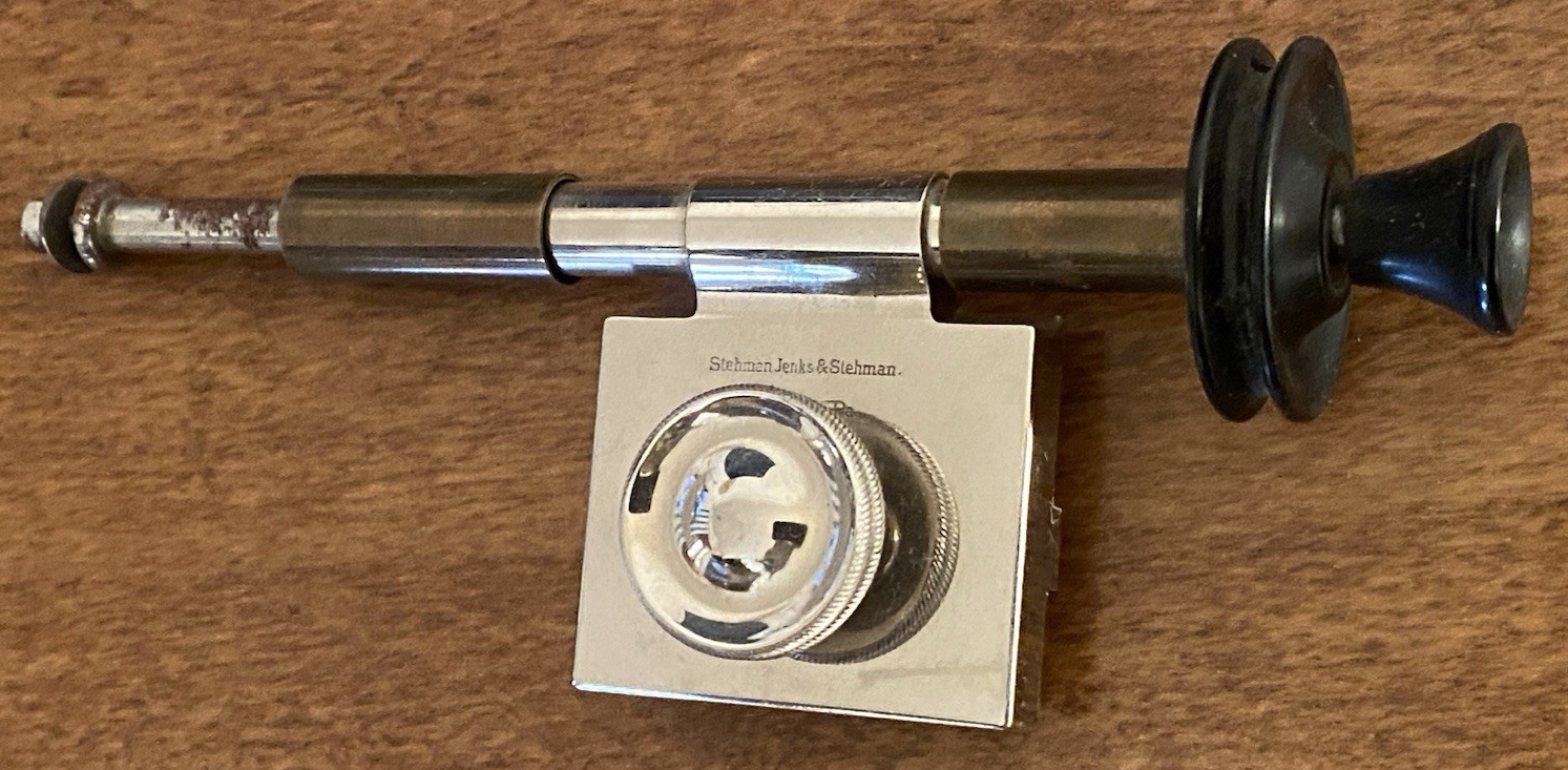 Looking be an absolutely standard watchmaker's lathe of its time - circa 1890 to 1910 - the Stehman, Jenks and Stehman 10 mm was made in Lancaster, Pennsylvania and today is comparatively rare. Well finished with close attention to detail, the lathe was built as a copy of the Webster-Whitcombe type, this particular design setting a new world standard for watchmaker's lathes upon its introduction 1888/9 and (with the exception of the lighter "Geneva" models) completely displacing earlier versions including the well-known Swiss Universal/English Mandrel and Bottum types. Not listed in any known commercial publication as a maker of machine tools, the only clue to the existence of this lathe's maker are the United States Patents No. 463,750 and No. 463,751 taken out by Edward Stewart Stehman of Stehman, Jencks & Stehman (Pennsylvania), in 1891 for the unusual 3-way compound slide rest. Happily, the example of the lathe shown below retains its slide, an artefact that the maker - having applied for a patent - must have spend some considerable time and trouble perfecting. The other user of a triple slide rest was Derbyshire, theirs being called "The Improved Webster-Whitcombe". Stehman, Jenks and Stehman also manufactured a rather unusual and interesting precision bench lathe, the headstock oiling arrangements of which appear to have mirrored those on their watchmaker's type with tubes to the rear of the bearing line indicating that oil was fed into a small sump beneath each bearing and lifted (less dirt) by felt wicks. Should any reader be able to provide a set of better photographs of a Stehman, Jenks and Stehman, the writer would be delighted hear from you.