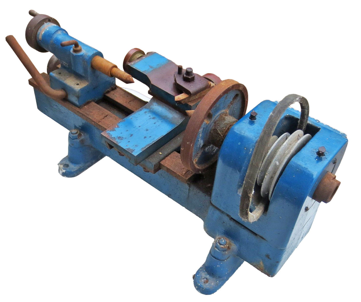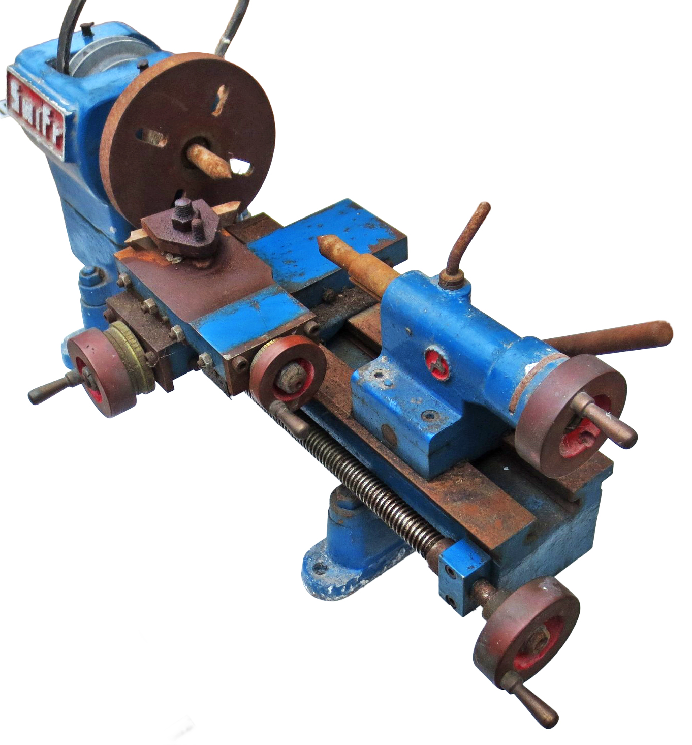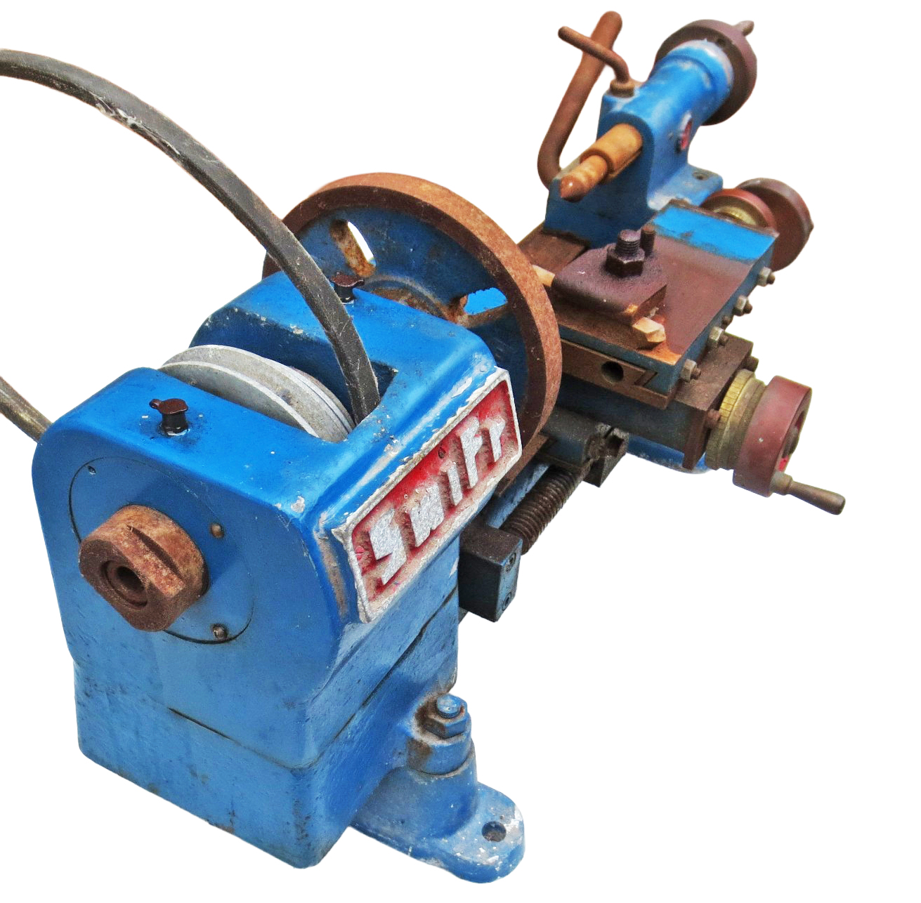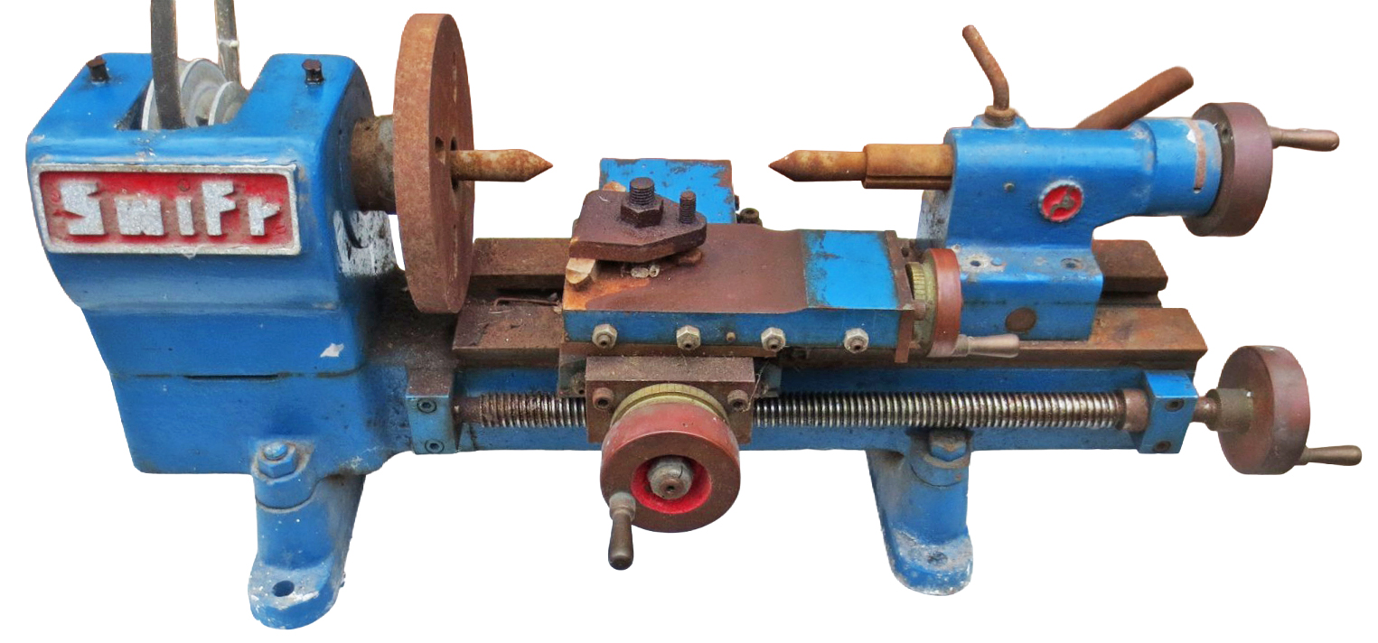 Built during perhaps the 1970s as part of a school GCSE (General Certificate of Education) metalworking project, three examples of the lathe were constructed. The teacher must have been a go-ahead type, for in that era proper metal working skills had started the degradation to "stick a ready-made mechanism to the back of a clock face". Heavily built and of the simple plain-turning type without a slow-speed backgear or screwcutting, the carriage had the advantage over several similar types of being driven along the bed by a hand-operated leadscrew. With a centre height of around three inches and admitting perhaps ten inches between centres, the lathe would have provided sufficient capacity and usability to manage many small jobs in the workshop of a model engineer. Both cross and top slides were fitted with good-sized micrometer dials and the 3-speed drive by an A-section V-belt. The builder never used the lathe, but stored it at home for many years and the photographs show it when rediscovered in 2026. With a few hours' work it could easily be restored to working order. Another lathe built by students was the Haighton Cadet, this being part of a project by a college local to the Haignton factory where in the 4th & 5th year of their City and Guilds Machine Shop Engineering Course, (due to and their teachers' common sense) students had to build a 'Cadet' from castings and parts supplied by the Company.