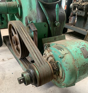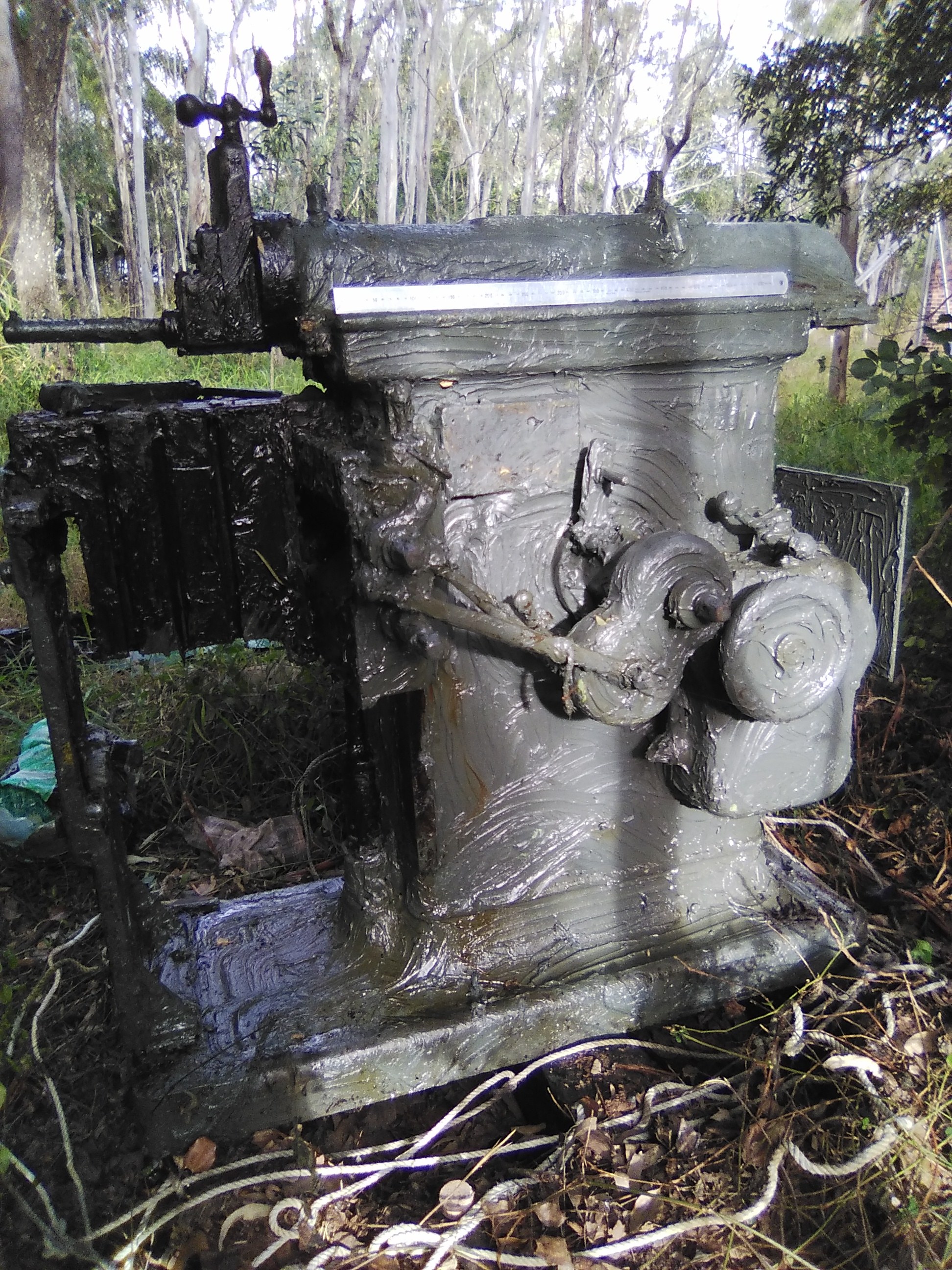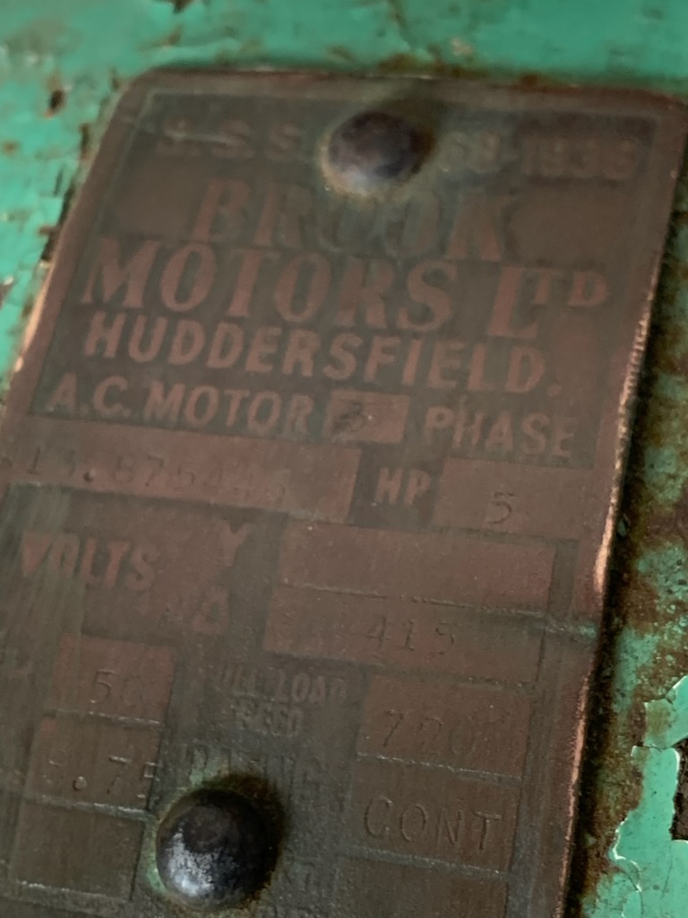 To date, the only shapers branded as "Torpex" have been found in Australia, one carrying a heavy badge in bronze proclaiming "Machinery Merchants Engineering Supply Co. of Australia Ltd. Brisbane and Townsville" The name Torpex is in parentheses, perhaps hinting at a branding system used by a Swedish Company for export markets. However, as none of the known makers of shapers in Sweden made one of a similar design, the question remains open. One example, in green below, has a 24-inch stroke; the other, covered in grease for outdoor storage, is an 18-inch model. As shapers from the 1930s into the late 1950s all look somewhat similar, dating the machines is difficult; the only clue is the English Brook motor, which might carry a date of 1936.