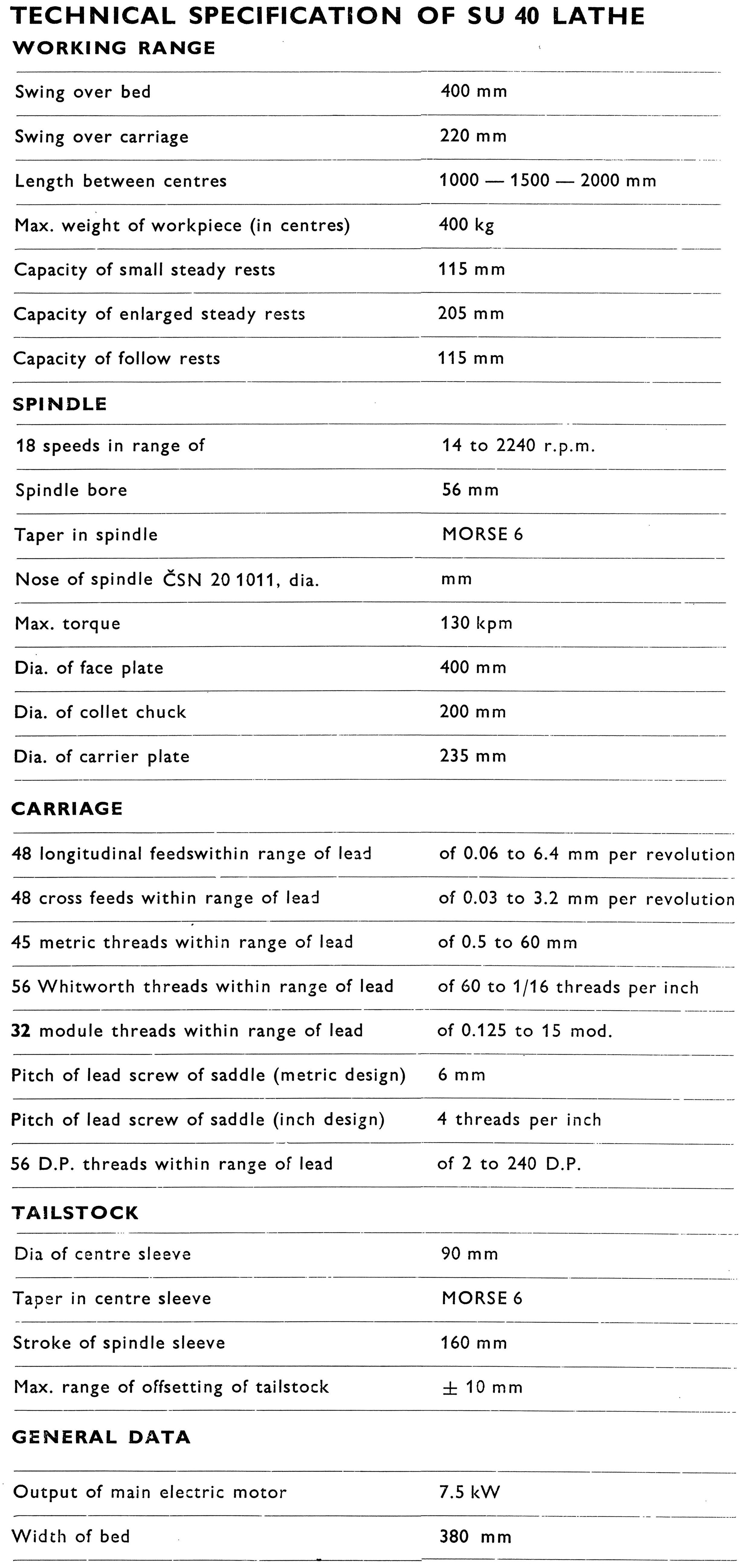 TOS SU-40 Lathe