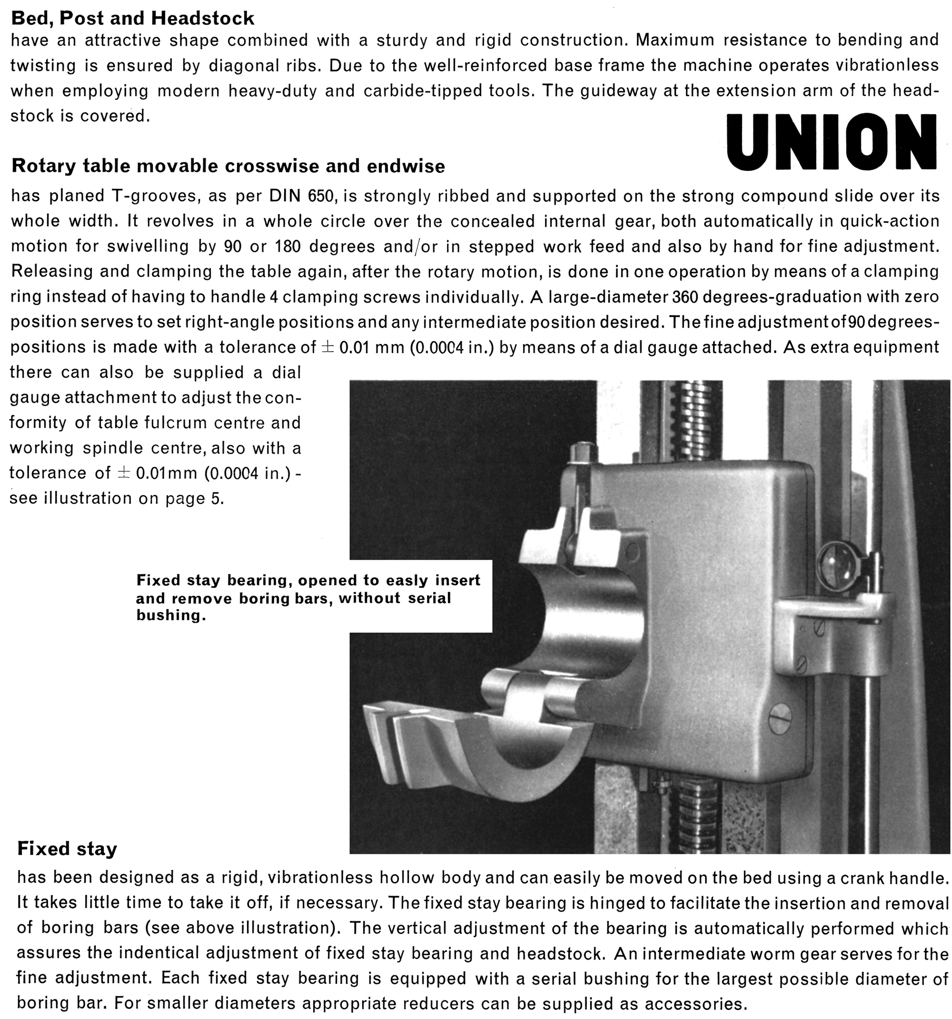 Made from the early 1950s until the 1980s, the WMW Union horizontal boring and milling machines were, for their capacity and strength, modestly priced and consequently exported in considerable numbers worldwide.