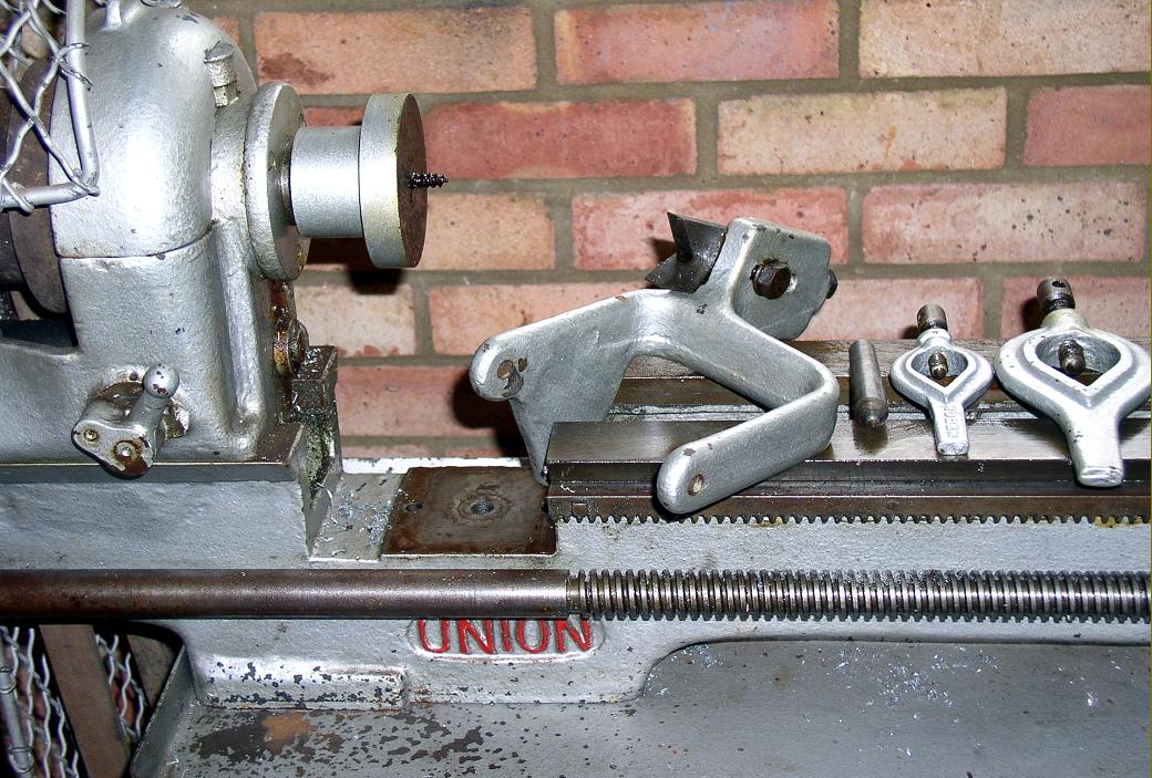 Enjoying by far the best mechanical specification of any Union lathe the 5" x 30" model L.2.A.S. was fitted with drive to the 1" x 4 t.p.i. leadscrew through a proper tumble reverse mechanism, single-lever engagement of backgears, clasp nuts on the apron and a bed whose planed top was hand scraped.