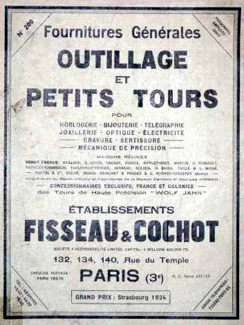 Yet another "unbranded" small backgeared and screwcutting lathe appearing as though it might have been made in France. However, it carries a badge proclaiming Fisseau & Cochot, a company based at 132, 134 and 140 Rue du Temple, Paris and who were agents for the German Wolf Jahn concern. Hence, the lathe is actually a Wolf Jahn, almost identical to that shown here http://www.lathes.co.uk/wolfjahn2